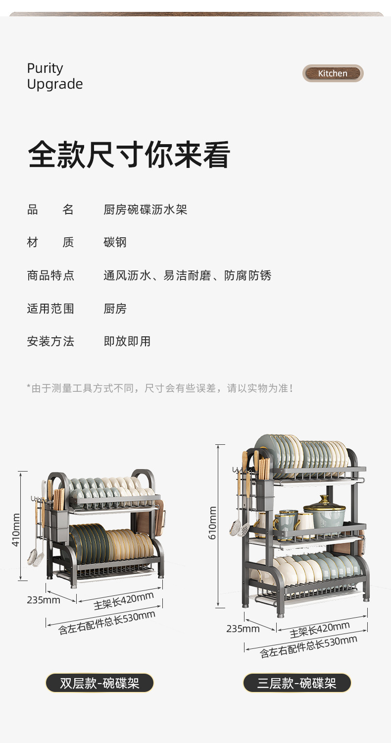 | Número de capas (especificaciones) | [Actualización y engrosamiento] 42CM pistola de doble capa estante para platos gris,[Actualización y engrosamiento] 42CM pistola de doble capa estante para platos gris (portacuchillas, palillos, portacuchillas),[Actualización y engrosamiento] 42CM pistola de tres capas estante para platos gris,[Actualización y engrosamiento] Soporte para platos gris con pistola de tres capas de 42CM (soporte para cuchillos, soporte para palillos, soporte para tablas de cortar),[Actualización y engrosamiento] Rack para platos negros de doble capa de 42CM,[Actualización y engrosamiento] Soporte para platos negros de doble capa de 42CM (soporte para cuchillos, soporte para palillos, soporte para tablas de cortar),[Actualización y engrosamiento] Soporte para platos negro de tres capas de 42CM,[Actualización y engrosamiento] Soporte para platos negro de tres capas de 42CM (soporte para cuchillos, soporte para palillos, soporte para tablas de cortar) |