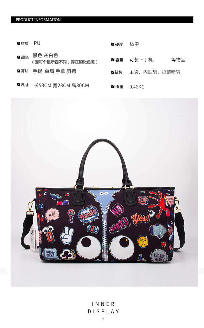 Bolsa de viaje de gran capacidad de acondicionamiento físico de dibujos animados de moda bolsas de viaje personales 2655 #