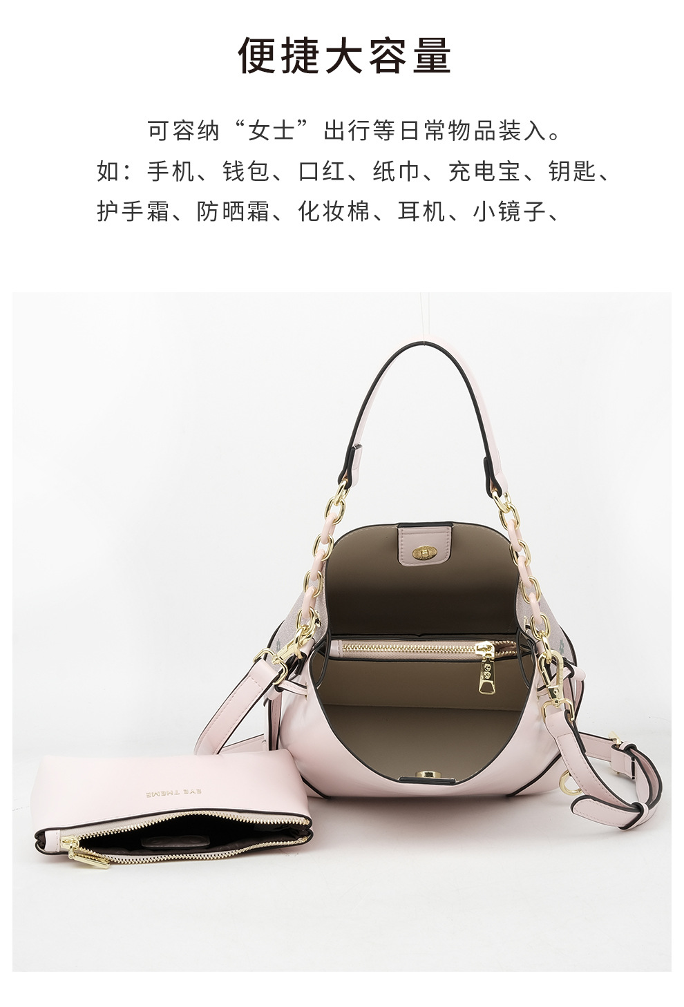 | Estructura interna del paquete | Bolsa de teléfono móvil, bolsa de documentos, bolsa de cremallera entrepiso |