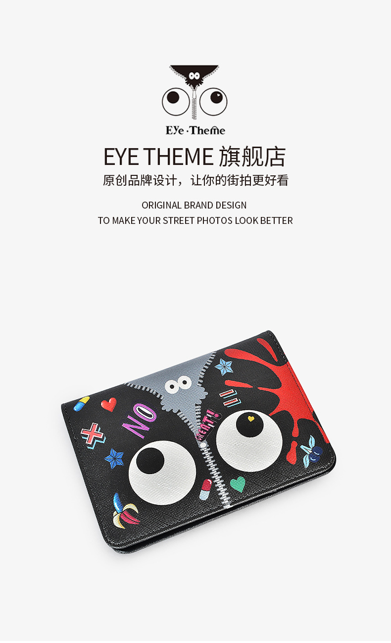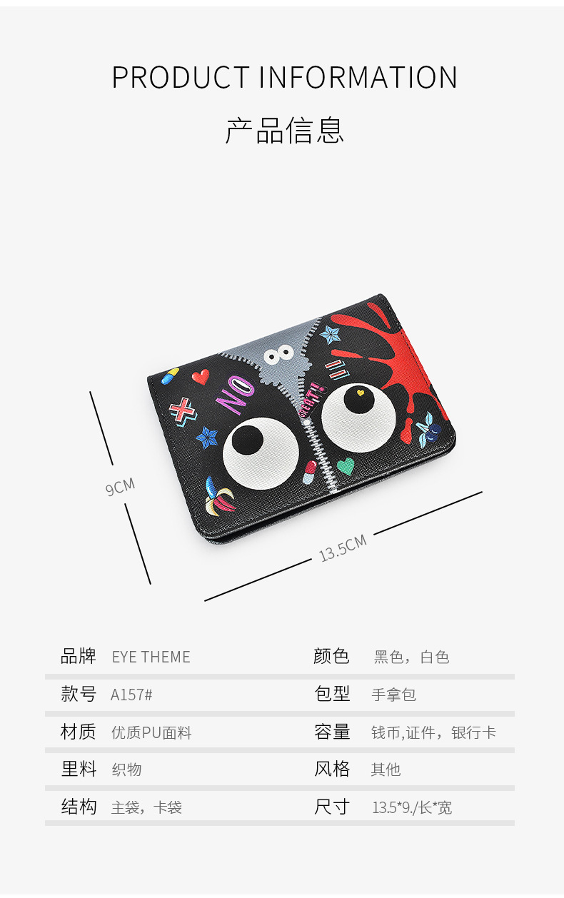 Bolso de pasaporte con estampado neutro de ojos grandes para hombres y mujeres, estuche para tarjetas, microfibra A157 #