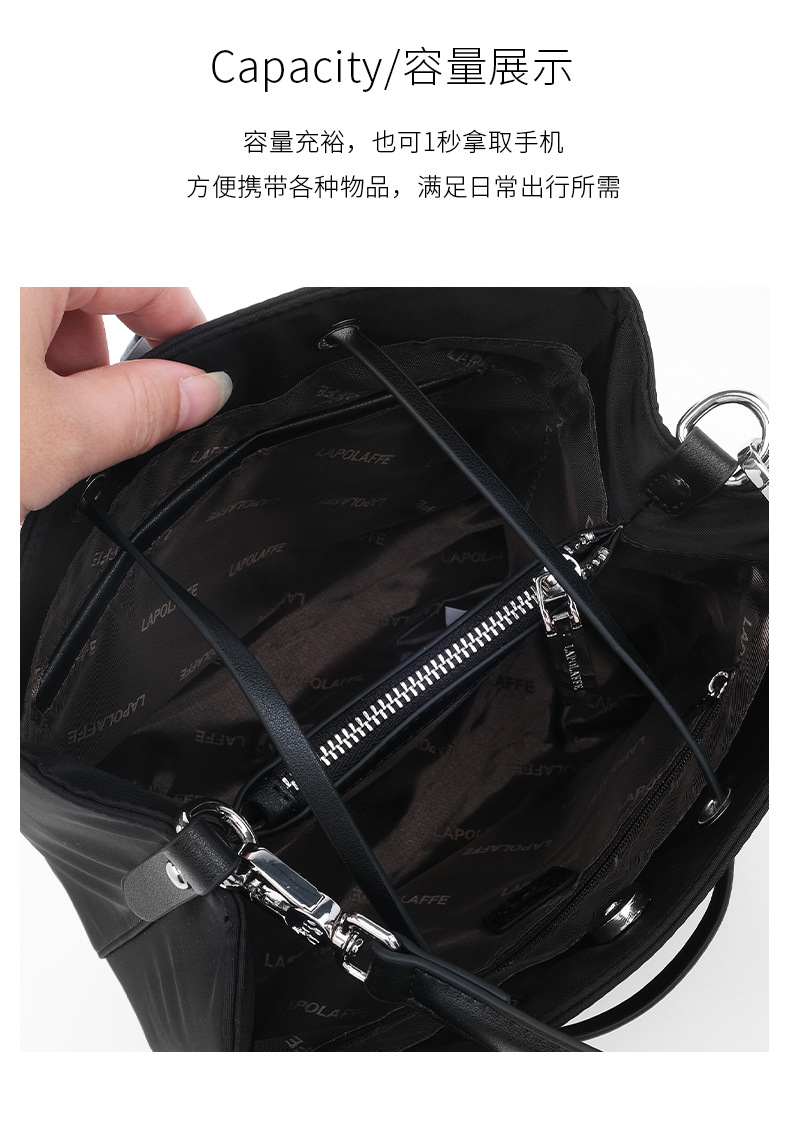 | Estructura interna del paquete | Bolsa oculta con cremallera, bolsa de teléfono móvil, bolsa de identificación, bolsa con cremallera entrepiso |