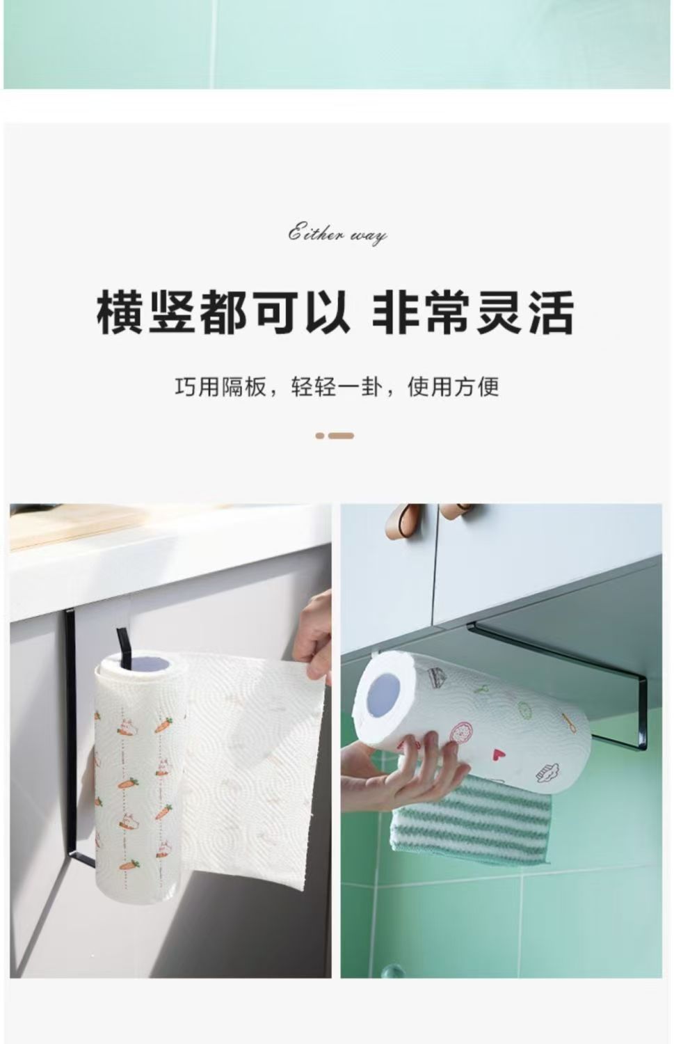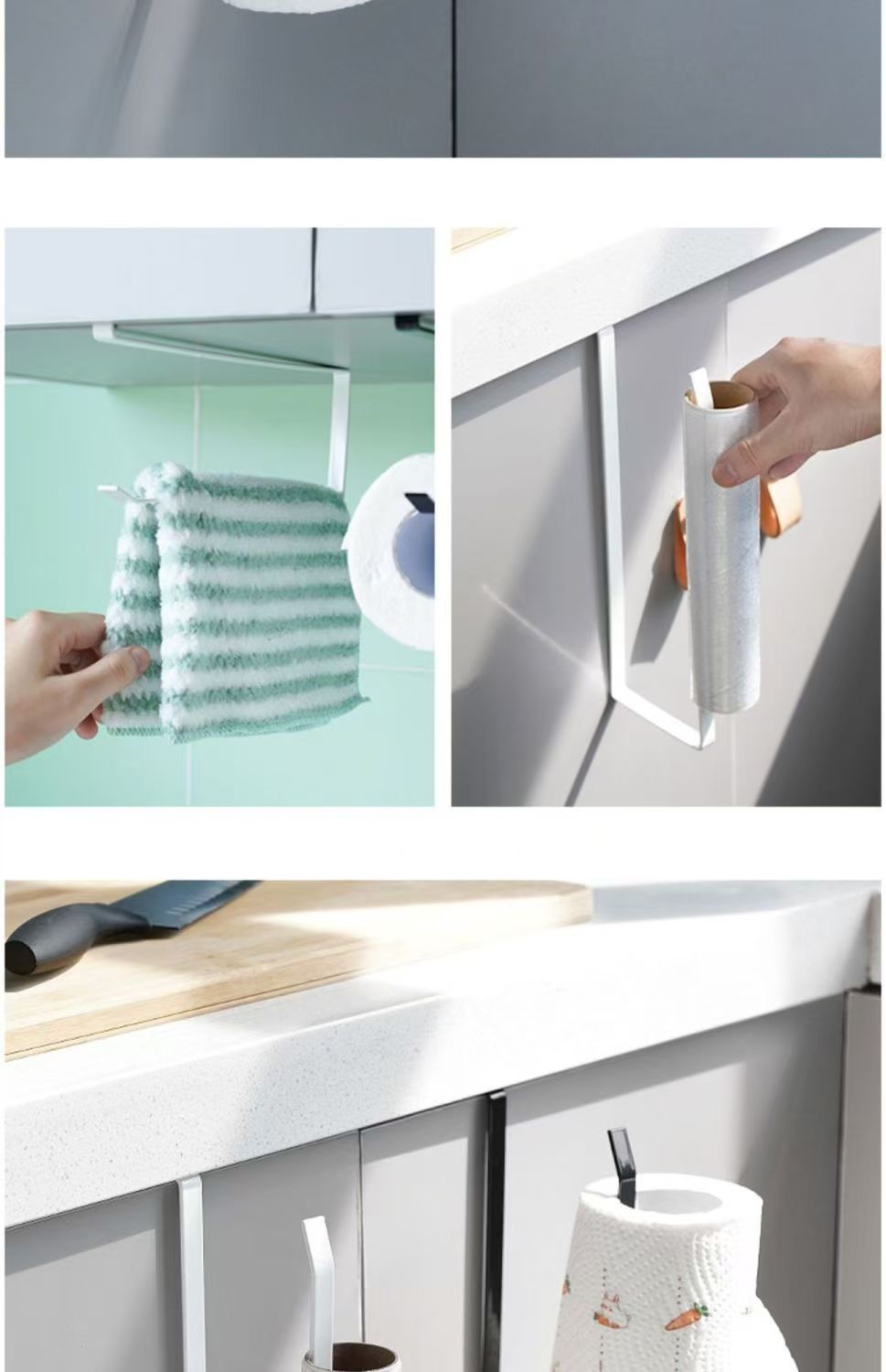 | Gabinete de cocina sin agujeros Roll Holder | Estante de cocina libre de perforación gabinete estante de papel de rollo estante de estante de lavaplatos soporte de tela de limpieza de película fresca tela de almacenamiento percha |