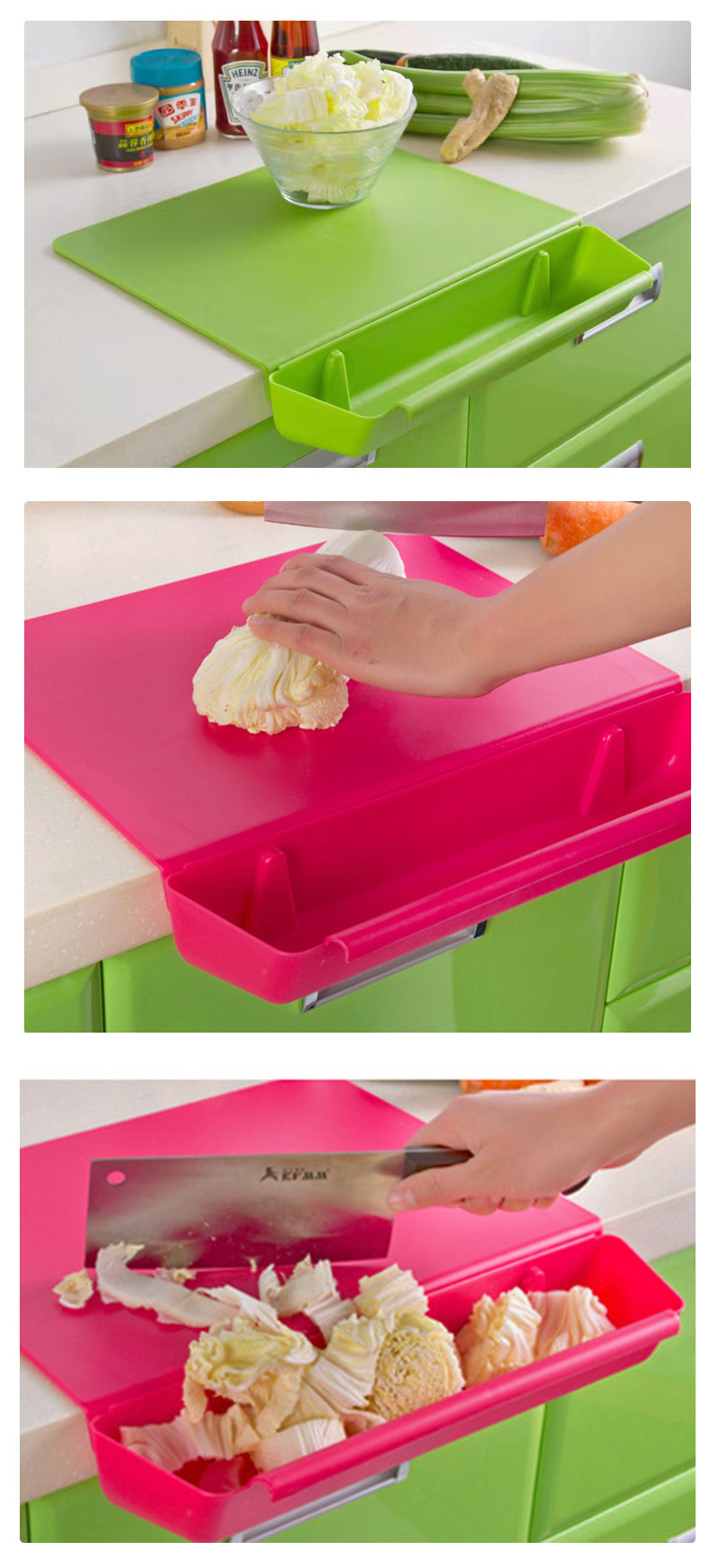 Fabricantes de verduras dos en uno tabla de cortar tabla de cortar antideslizante tabla de cortar tabla desmontable suministros de cocina juego de plástico