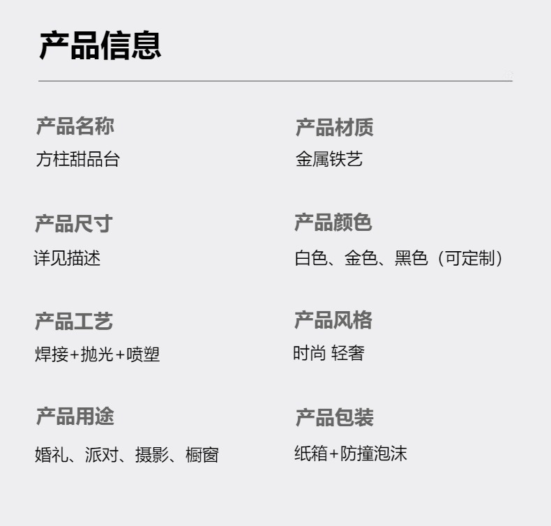 | Número de producto | Tabla de postre cuadrada para pastel |