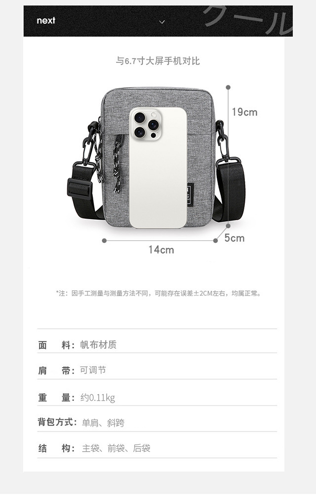 Bolsa de hombro simple para hombres, ropa de moda de Oxford, mochila de hombro, mochila casual para hombres, bolso de moda para teléfonos móviles