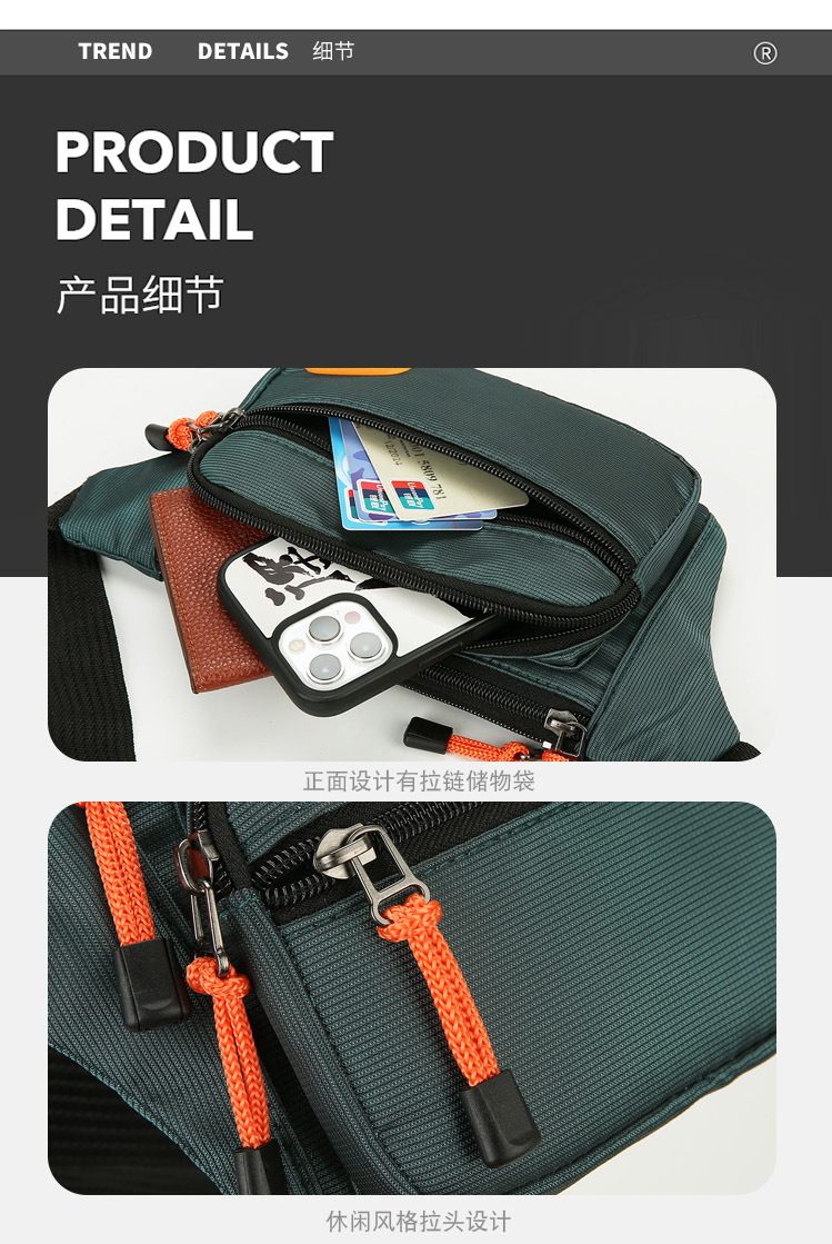 Riñonera de Moda Transfronteriza, Resistente al Desgaste, Repelente al Agua, de Gran Capacidad, Bolsa de Pecho Multifuncional para Deportes al Aire Libre, Bolsa para Teléfono Móvil al por Mayor