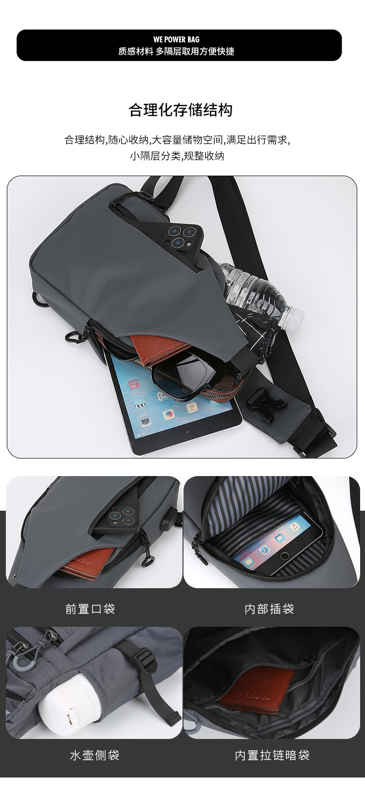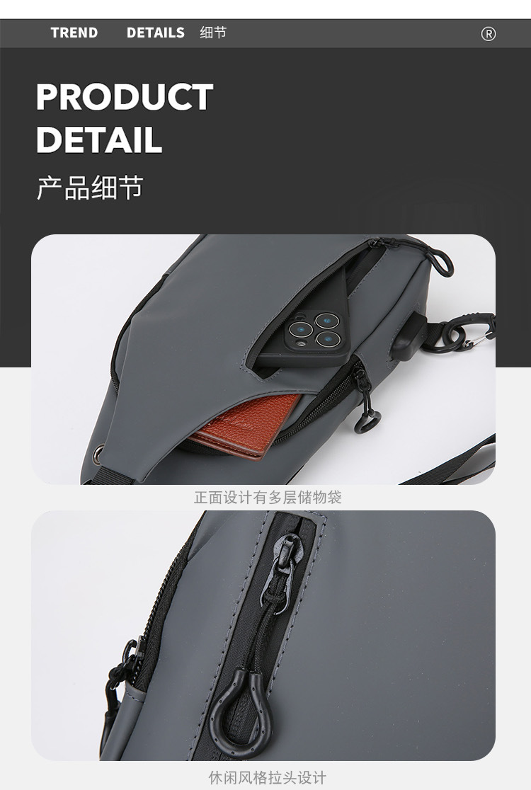 Wepower nuevos hombres de pecho USB bolsa de moda de gran capacidad Portátil Bolsa de hombro de moda simple negocio bolsa de mensajero