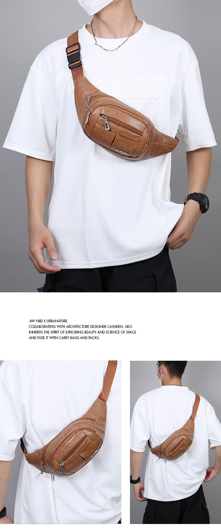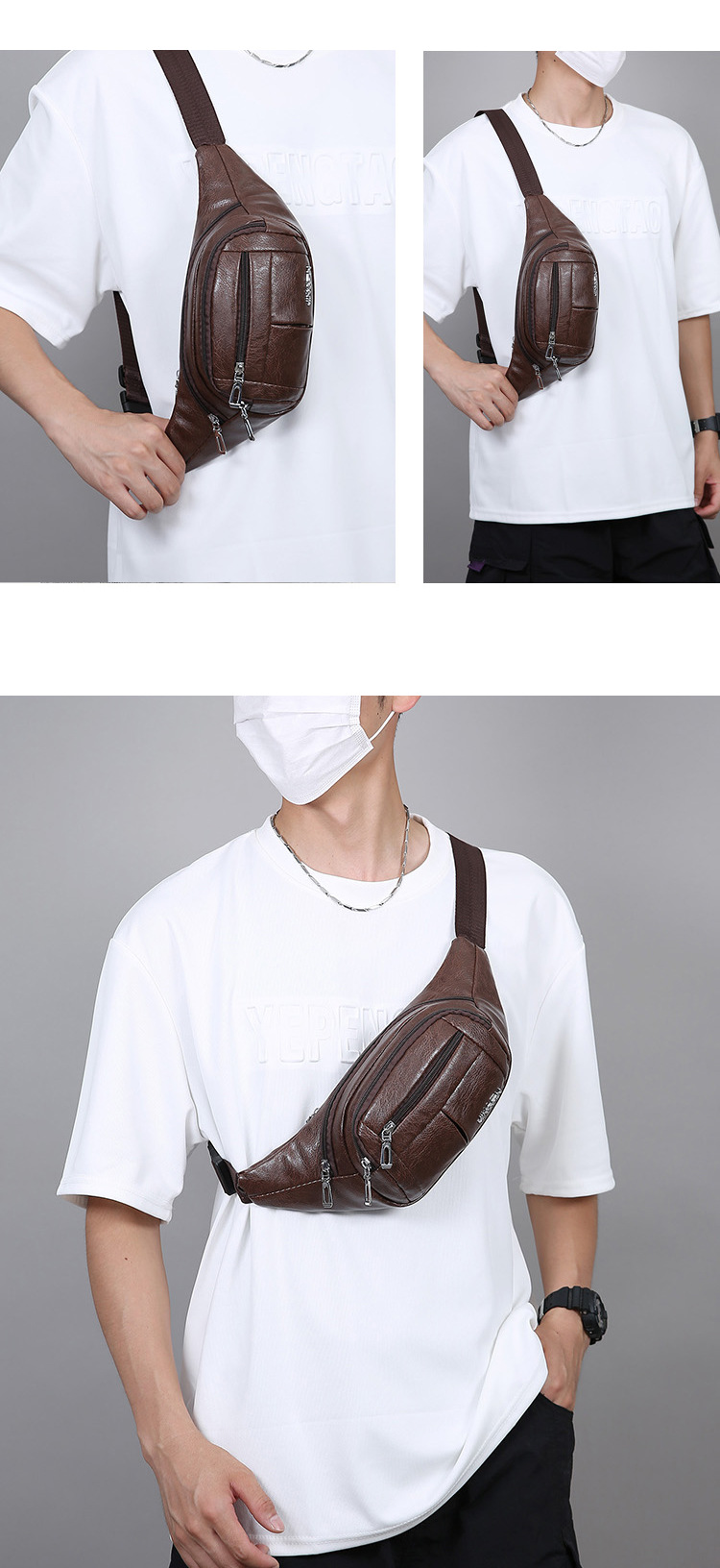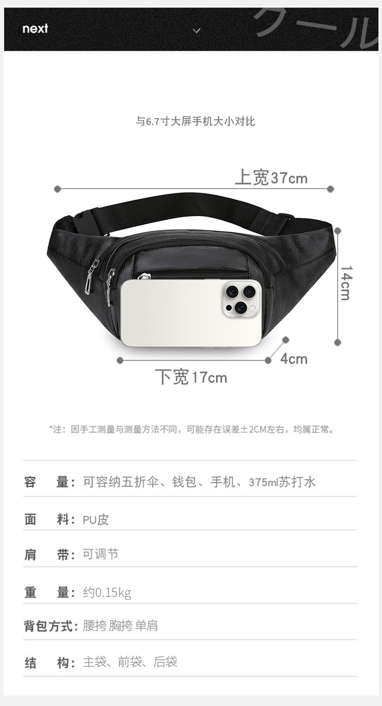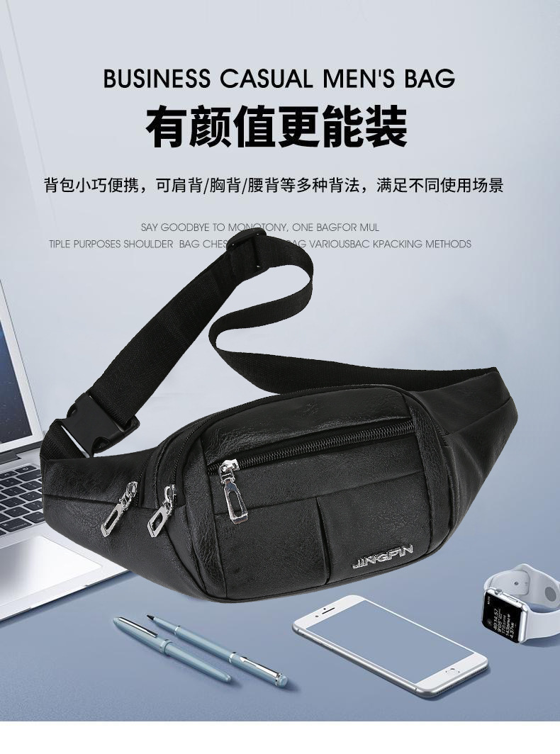 Bolso de pecho de cuero PU simple ocio duradero bolso de negocio portátil de viaje bolso de hombro mochila bolso deportivo de cintura