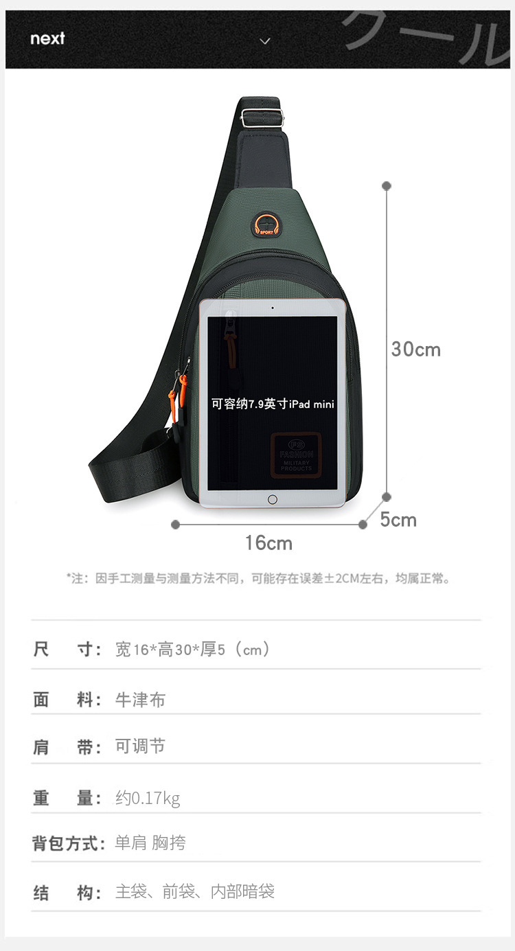 Bolso de pecho multicapa para hombre nuevo bolso de hombro pequeño de pecho de todo fósforo coreano impermeable y resistente al desgaste bolso de mensajero de un solo hombro pequeño de tela Oxford