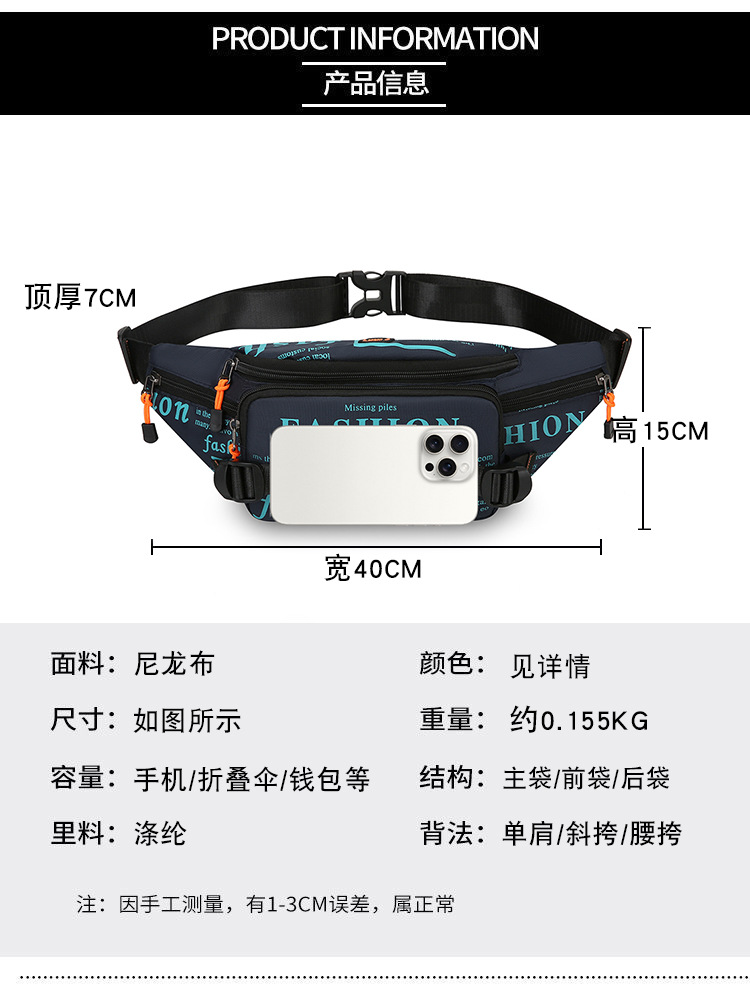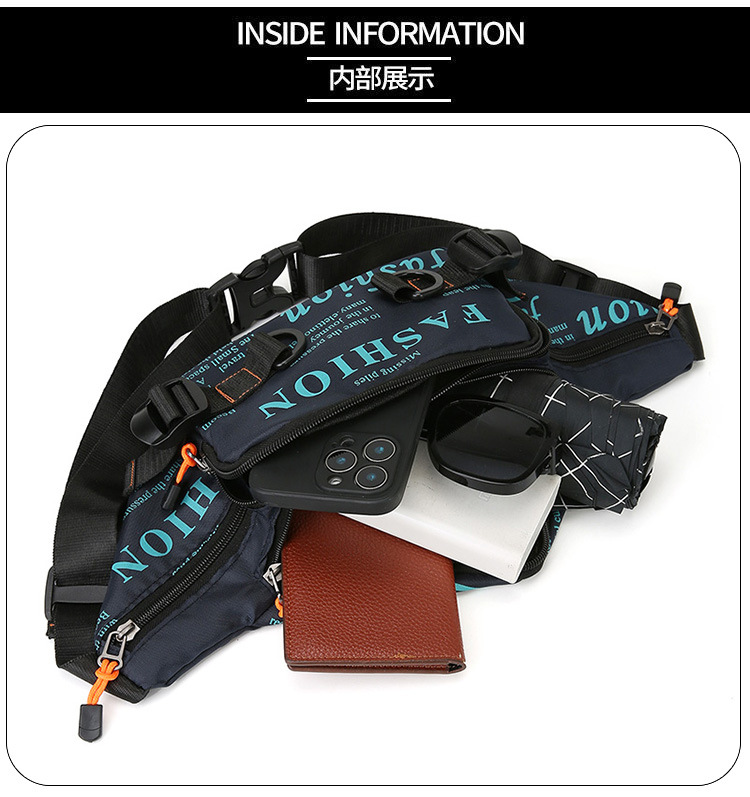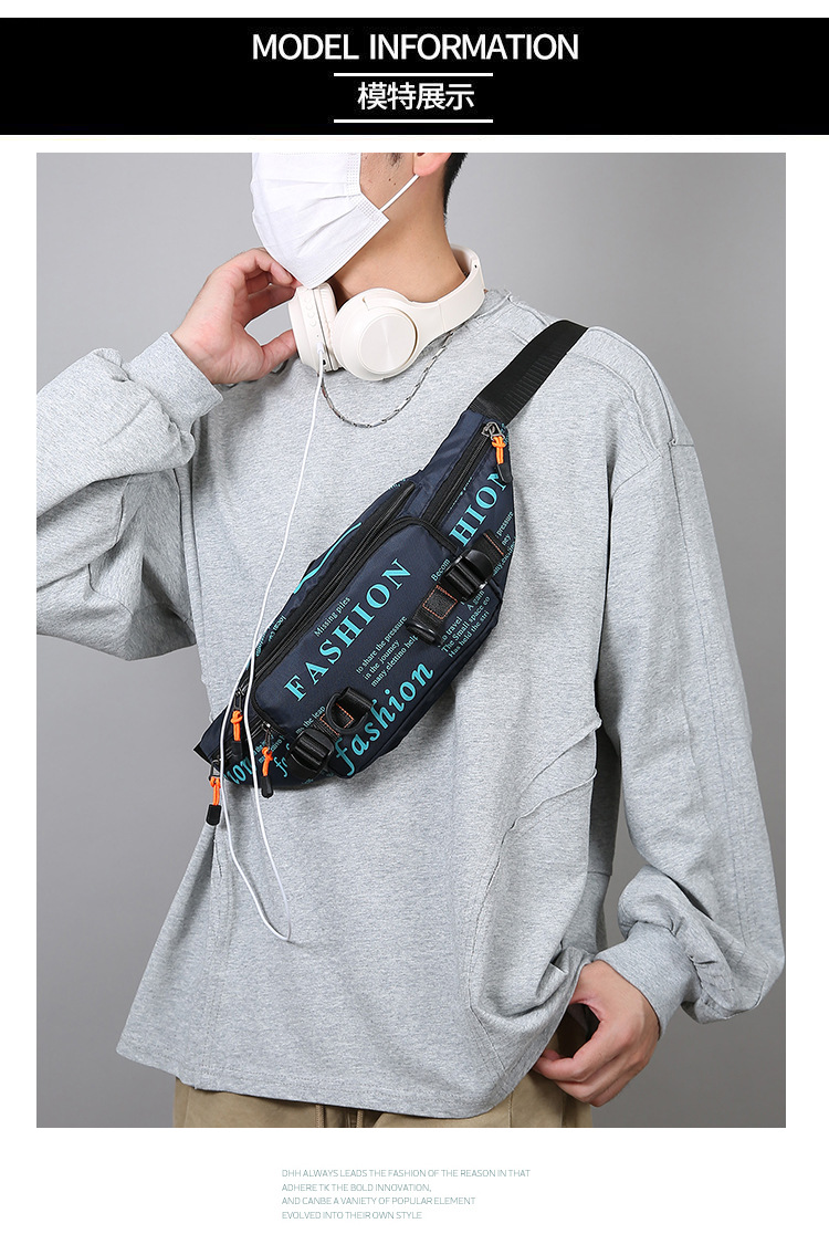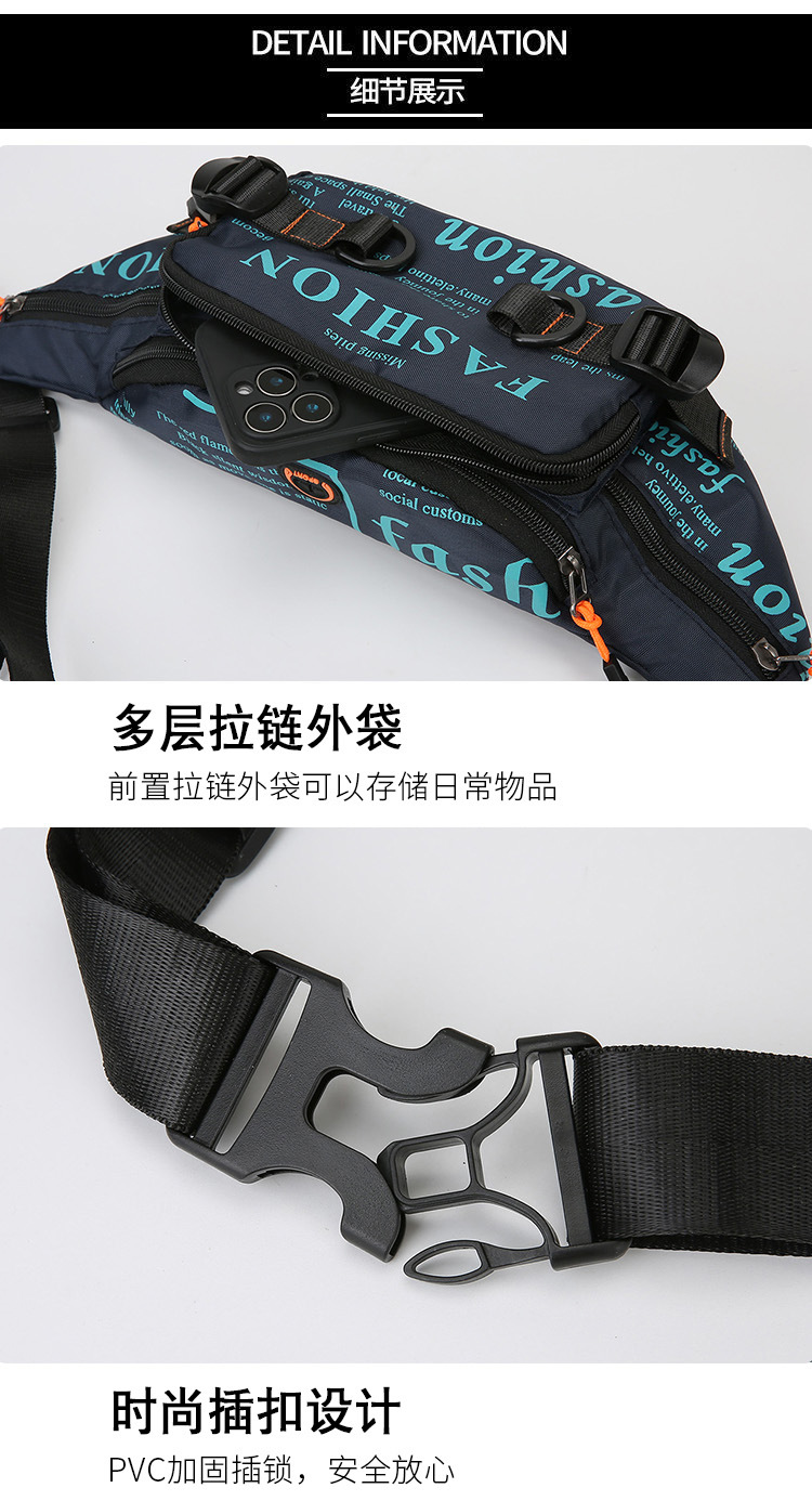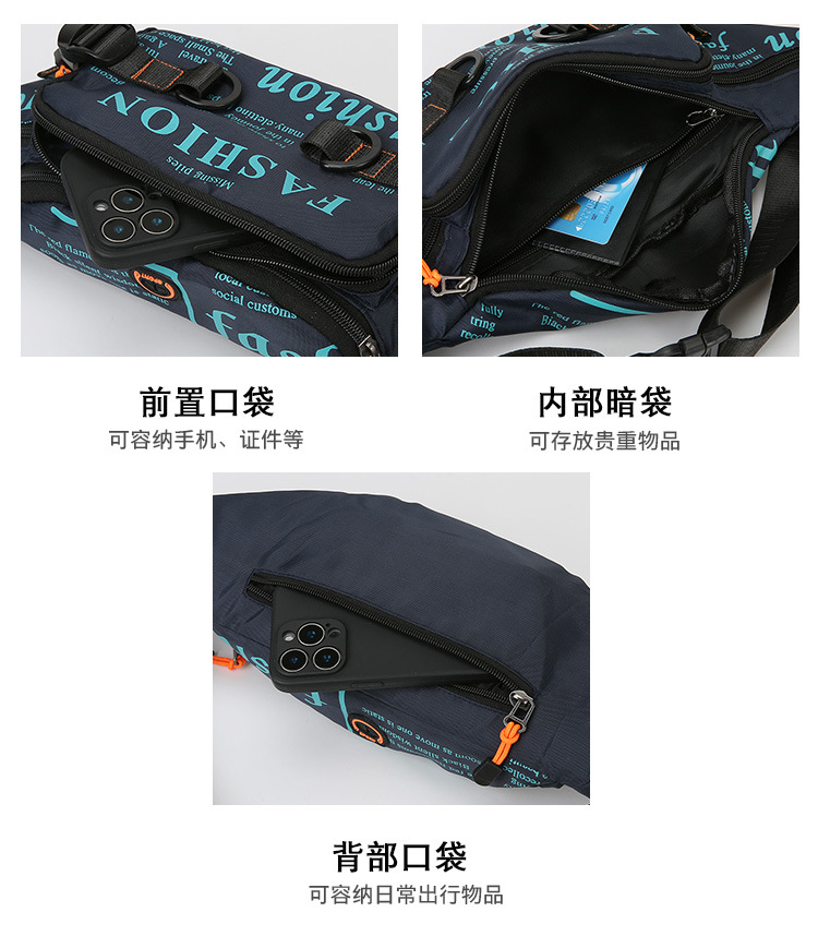 Bolso de pecho de hombre al aire libre, moda de ocio de la calle, bolso de hombro para teléfonos móviles, moda de letras de bicicleta, bolso de cintura deportivo