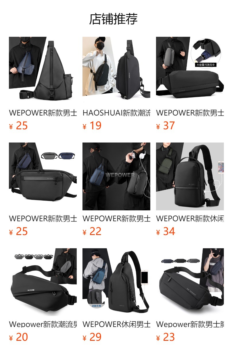 【产品货号】7680#胸包、单肩、斜挎包、可手提