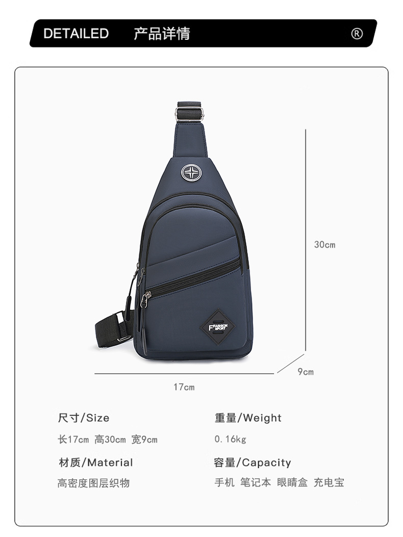 Bolso de pecho para hombre de comercio exterior Bolso de pecho para deportes al aire libre Bolso de moda para pareja casual para hombre Bolso bandolera de gran capacidad