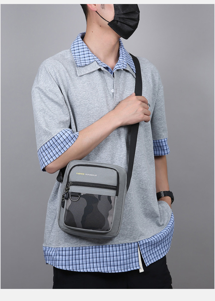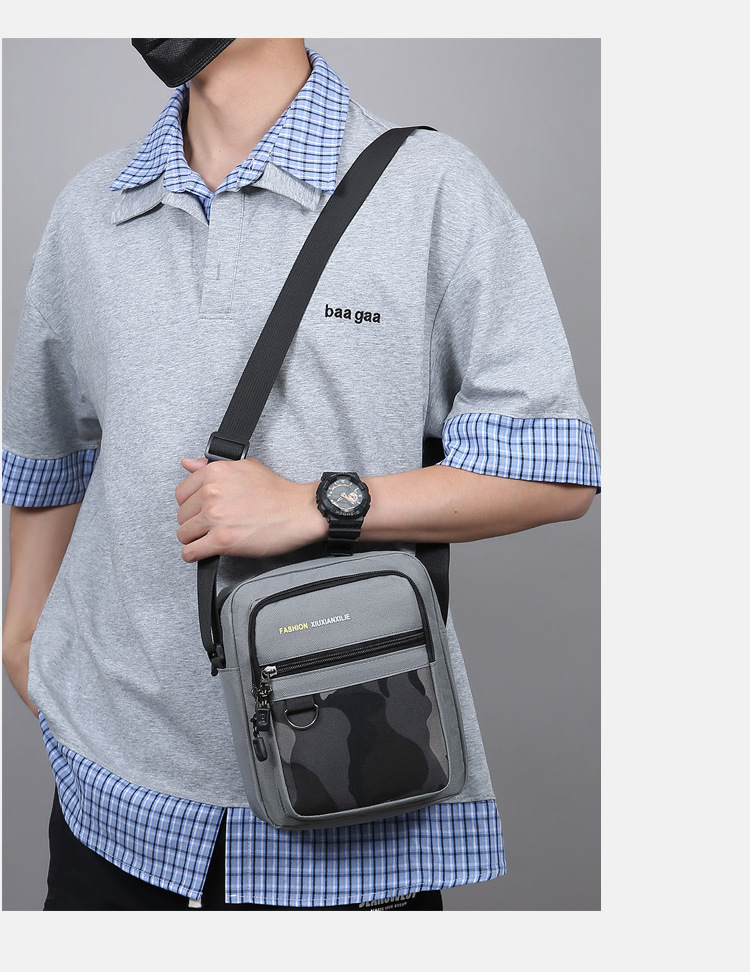 Cross-border nuevo bolso de hombre con cremallera de tres capas, bolso de hombre casual de gran capacidad de nylon, bolso de hombro de moda universal