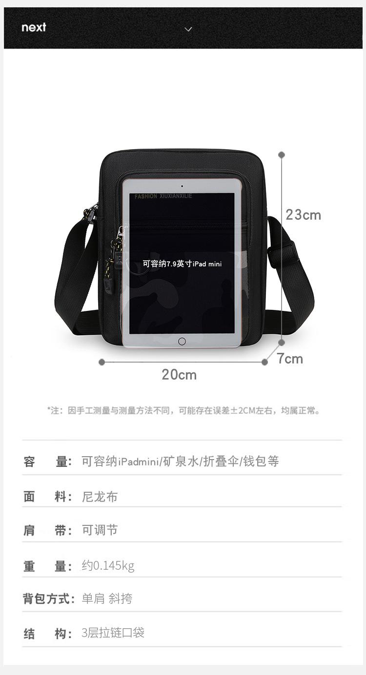 Bolso de hombro para hombre Bolso de hombre nuevo transfronterizo de gran capacidad Bolso de viaje de negocios Bolso de mensajero de tela Oxford casual