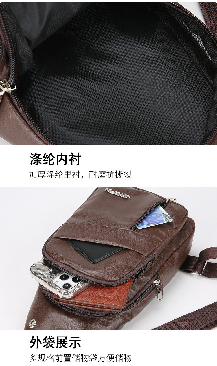 Comercio exterior nuevo bolso de pecho de cuero PU para hombres, bolso de hombro de viaje simple, moda al aire libre, bolso de bicicleta
