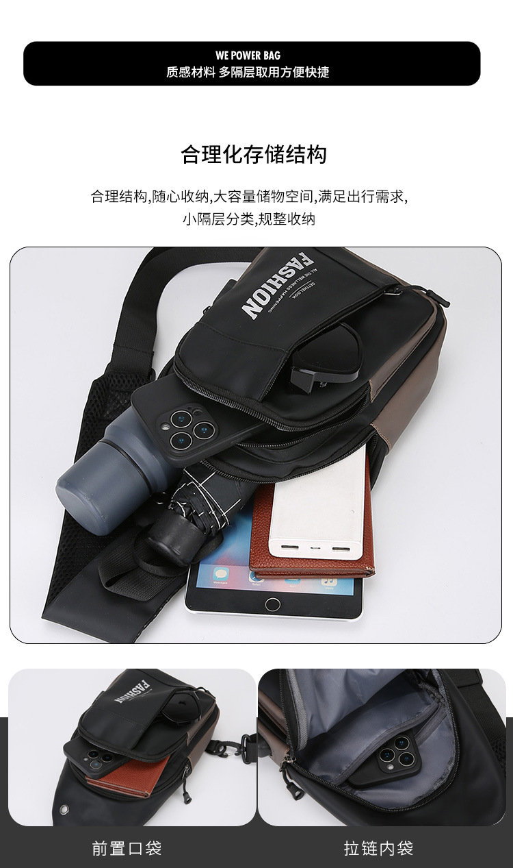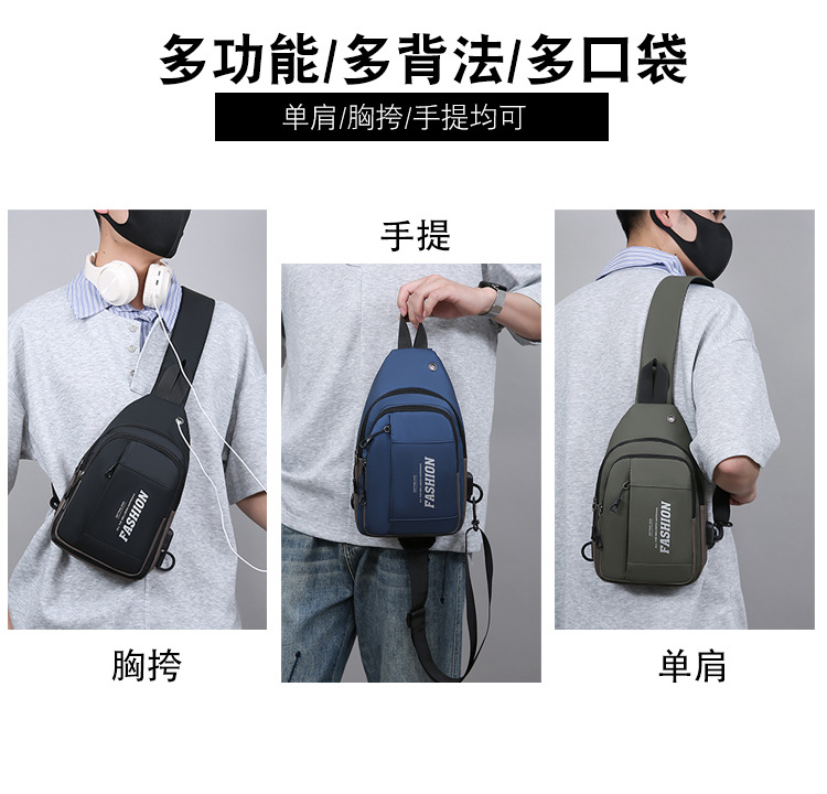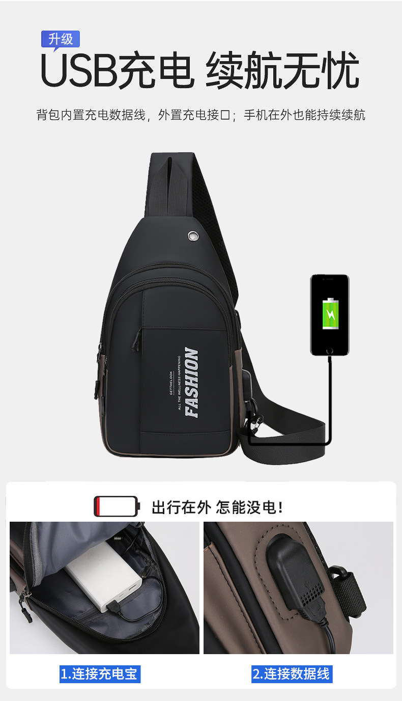 Bolsa de pecho Bolsa de hombro para hombre 2021 nueva bolsa de mensajero carga USB regalo ocio deportes mochila entrega al por mayor