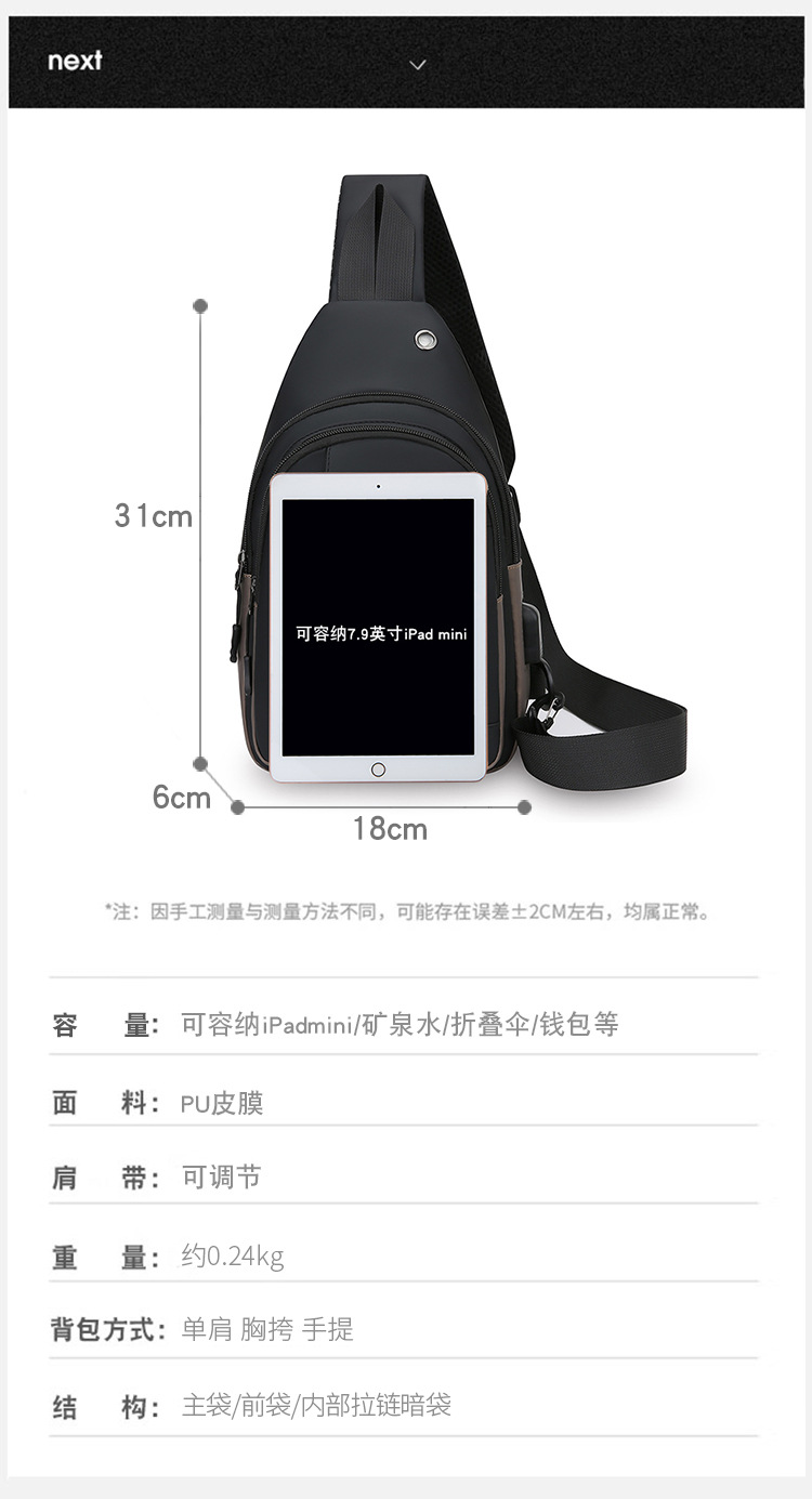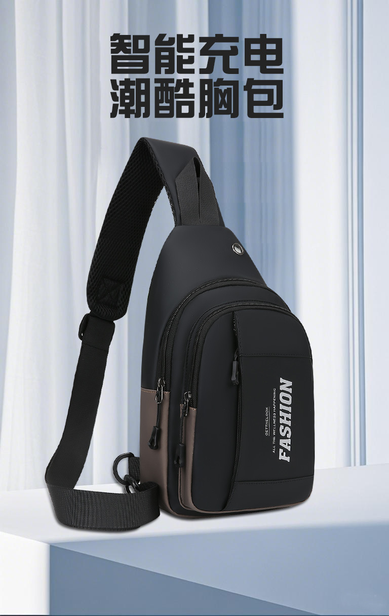 Especial transfronterizo para la nueva moda de los hombres bolsa de pecho multifuncional USB de carga casual hombro bolsa de mensajero al por mayor