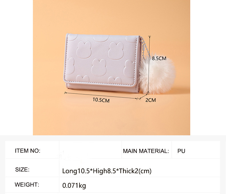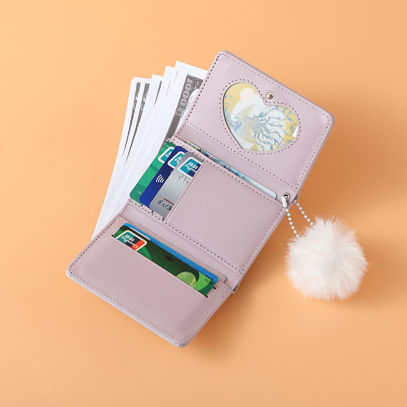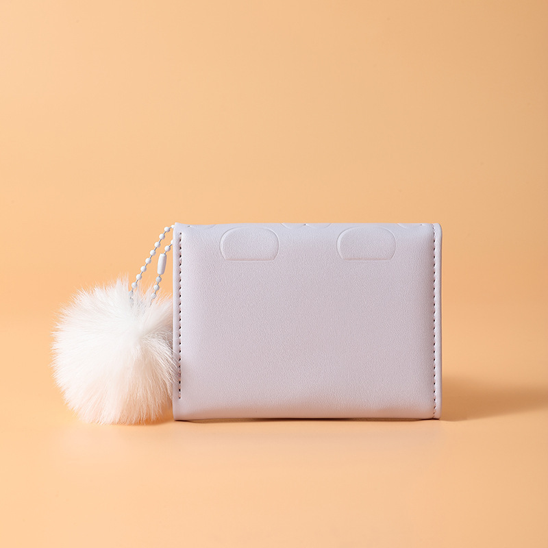 Cartera encantadora bolsa de tarjetas japonesa corta bolsa de cambio de chicas estampada bola de peluche colgante multi-tarjeta bolsa de tres pliegues