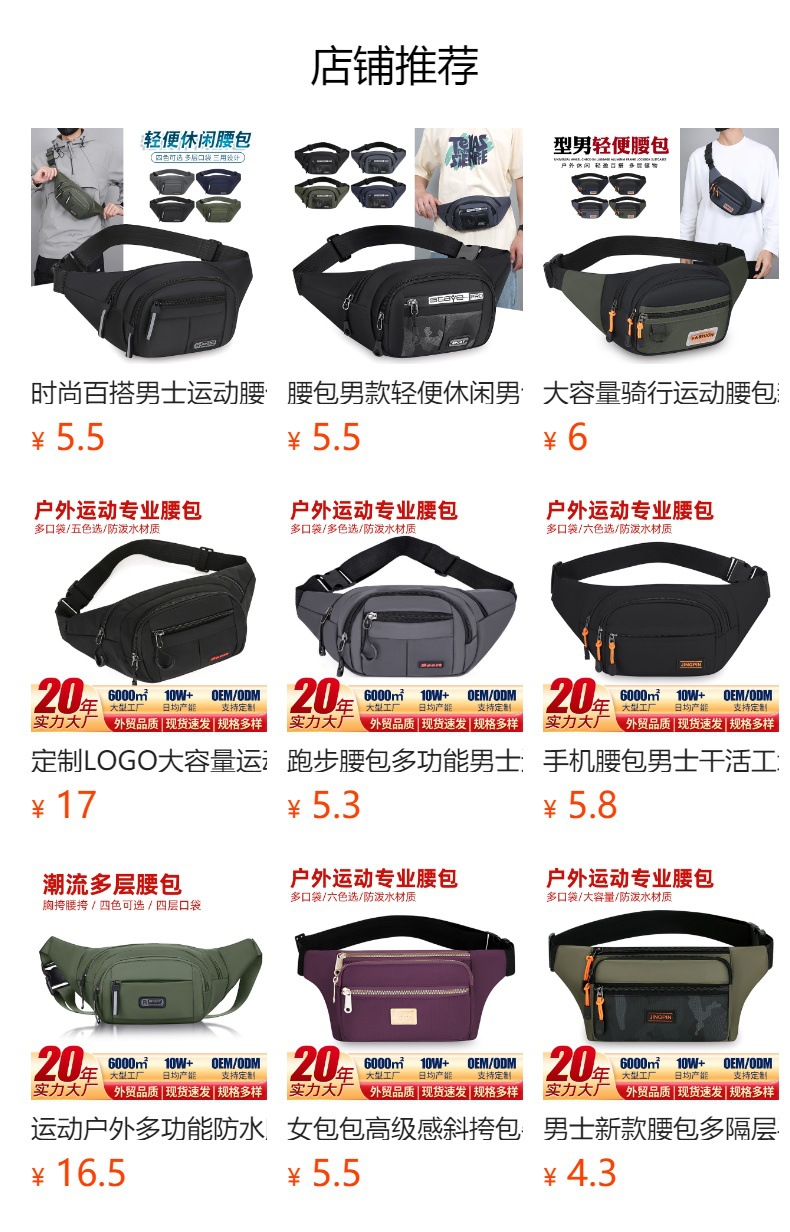 Fábrica al por mayor de los hombres al aire libre de deportes bolso de la cintura bolsa de pecho de moda fuera crossbody teléfono móvil cambio femenino entrega de una sola pieza