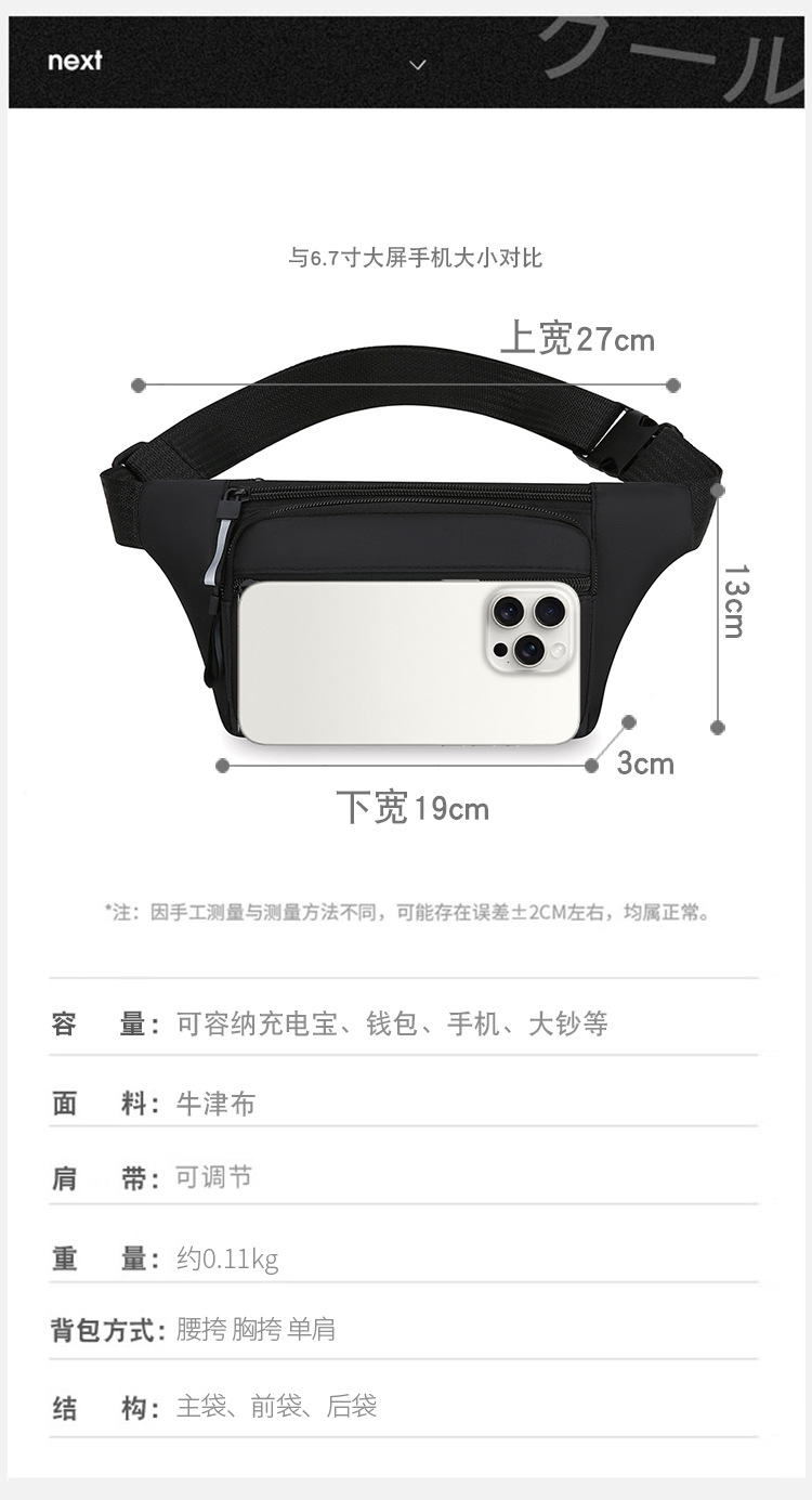 Bolso de tendencia ligero y delgado para teléfonos móviles, bolso de pecho deportivo portátil al aire libre, bolso de viaje de moda simple de hombro.