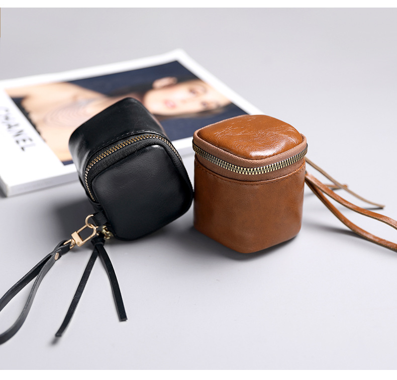 2024 nueva venta caliente mini bolso de lápiz labial portátil auriculares bolso de barril suave monedas de cuero suave bolsa de cambio en