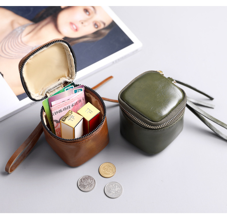 2023 nuevo cuero genuino monedero de la moneda de las mujeres bolso de la moneda monedero primera capa de piel de vaca pequeña cartera puede contener llaves de la tarjeta