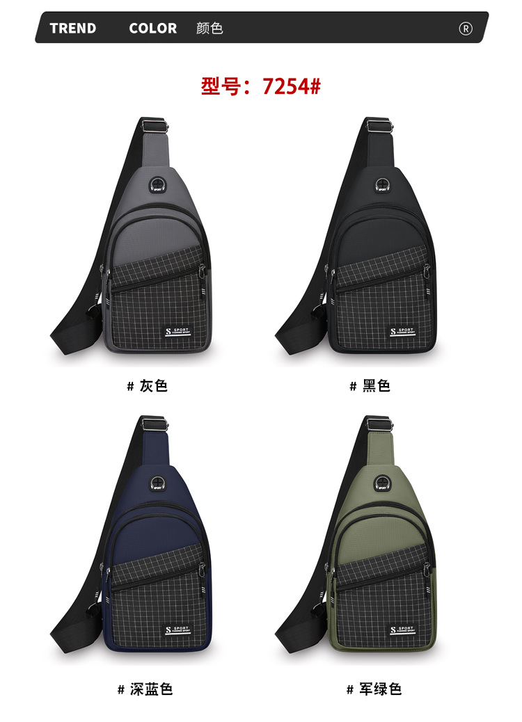 Bolso en el pecho de los nuevos hombres casuales Bolso en el pecho de tela Oxford de gran capacidad Bolso anti-salpicaduras Bolso bandolera para deportes al aire libre