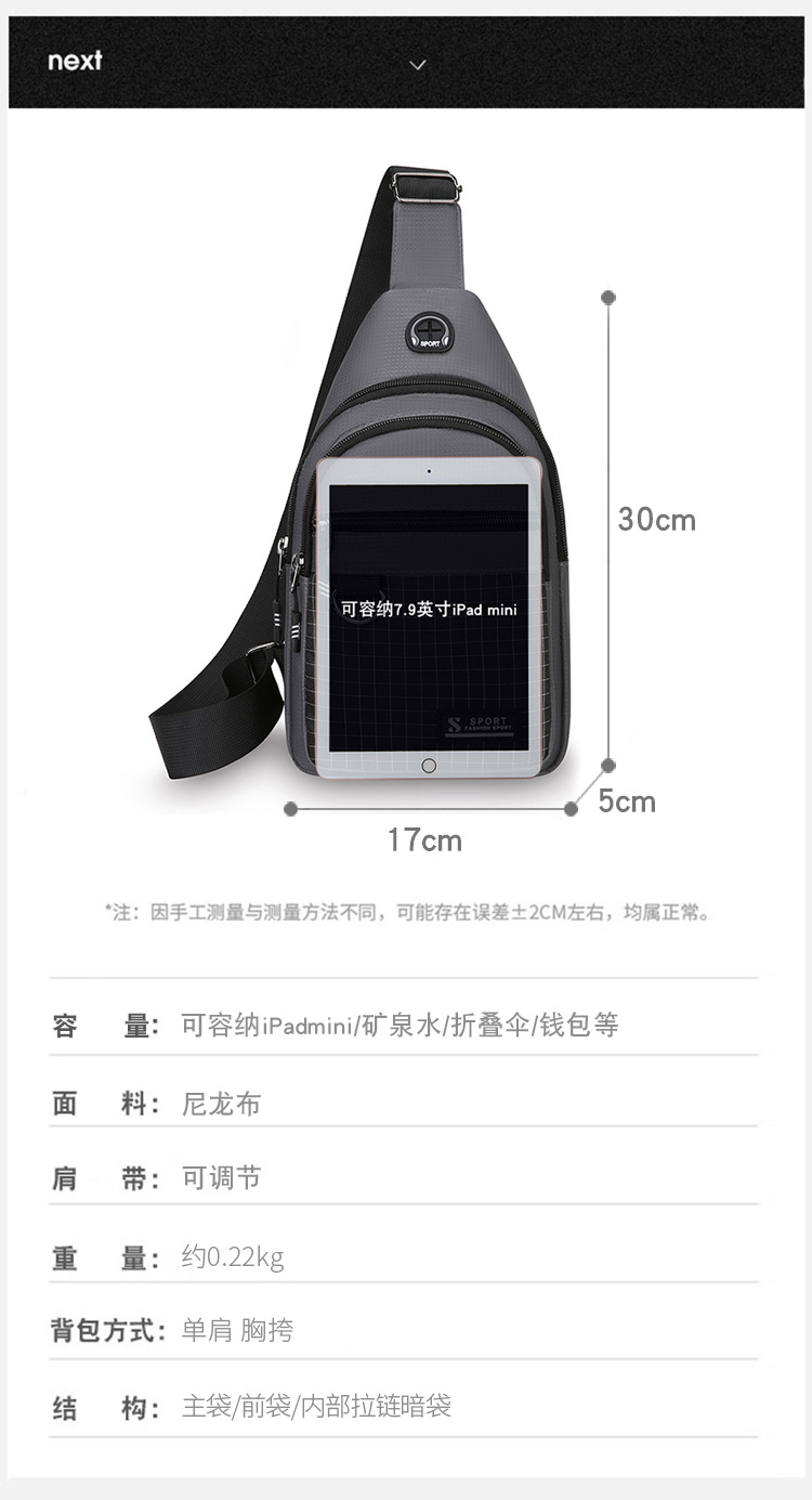 Comercio exterior nuevo bolso de pecho para hombres de viaje de negocios bolso de hombro portátil versátil bolso de ocio al aire libre multifuncional