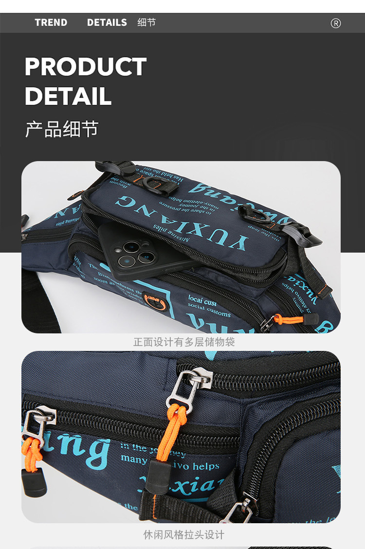 Venta al por mayor transfronteriza 2024 nueva moda al aire libre cintura casual bolso de mensajero de un solo hombro para hombre bolso de pecho impermeable multifuncional