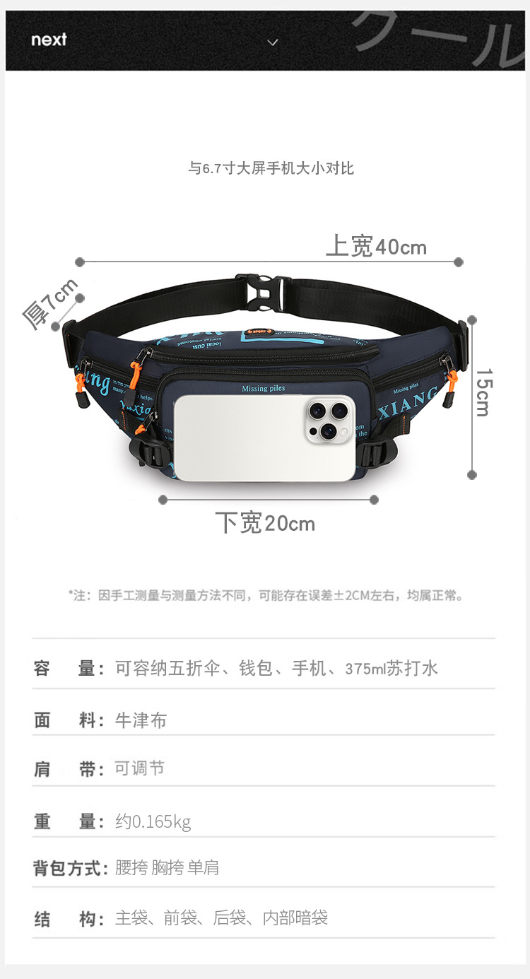 Bolso de cintura para hombre nuevo ocio bolso de hombro de viaje deportivo ligero de nylon montar en el pecho mochila de gran capacidad