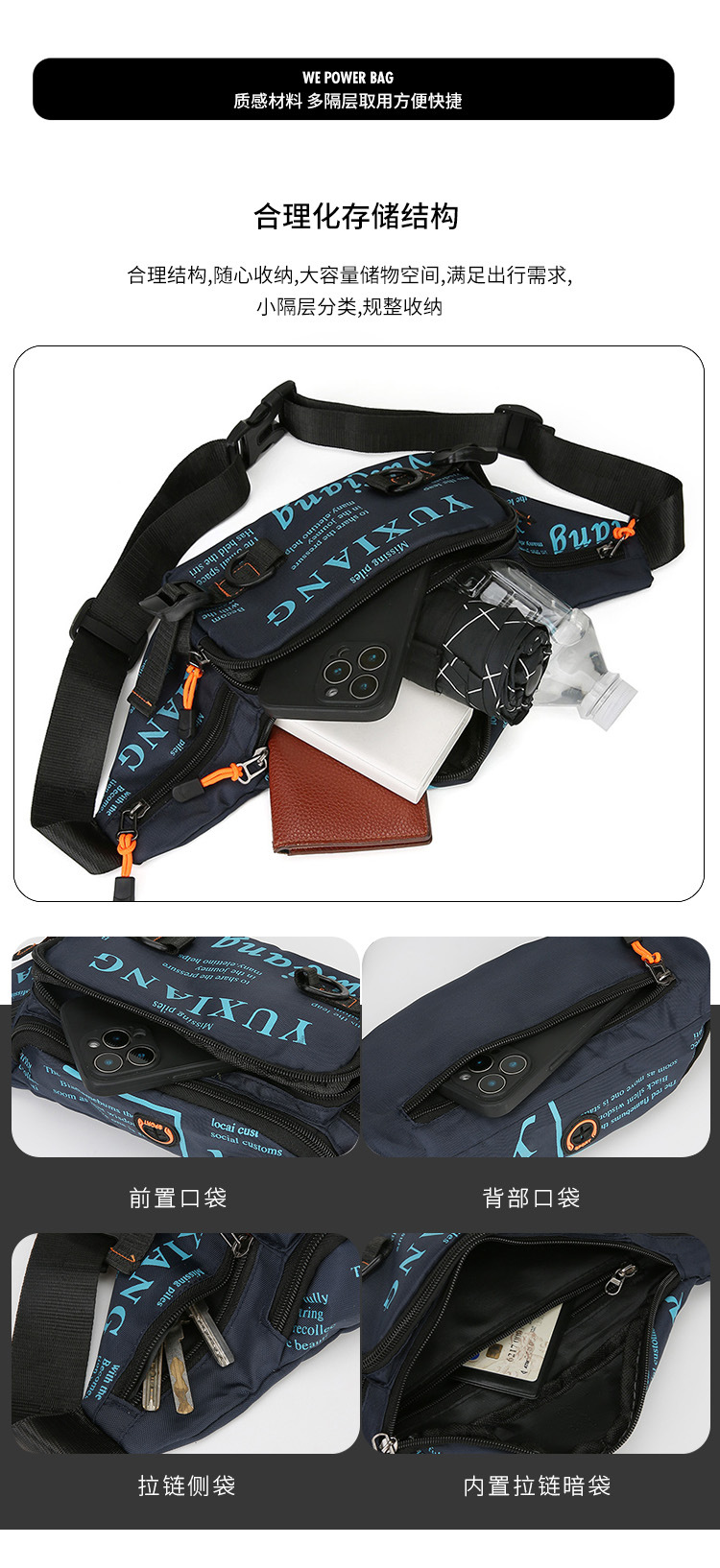 WEPOWER nueva moda pecho bolsa ocio deportes al aire libre bolsa de hombro diario ligero impermeable bolsa de mensajero
