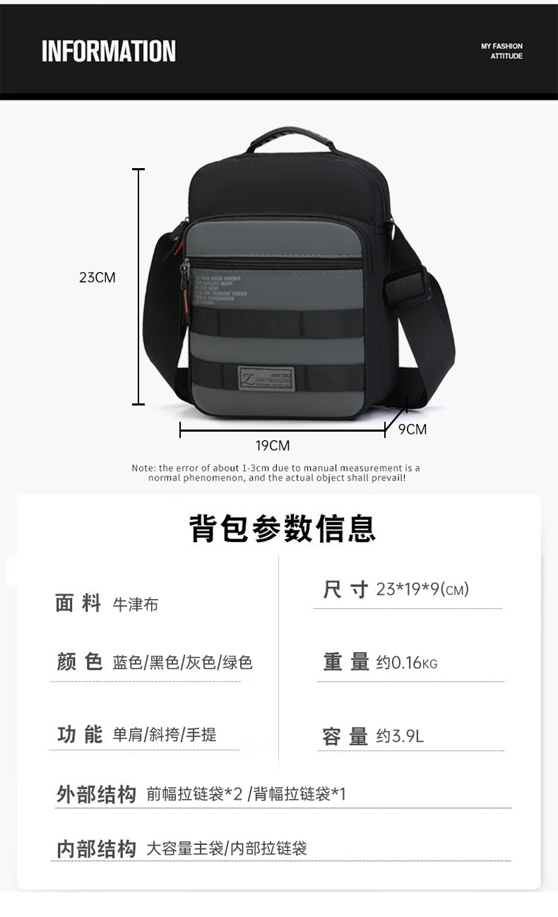 Bolso de hombro para hombre Bolso de hombre nuevo transfronterizo de gran capacidad Bolso de viaje de negocios Bolso de mensajero de tela Oxford casual
