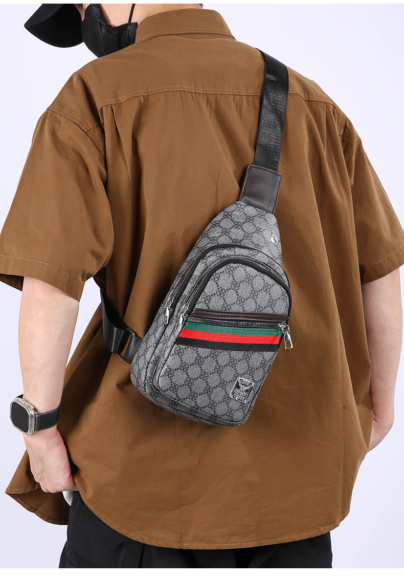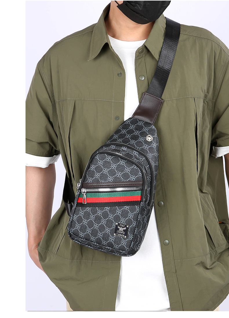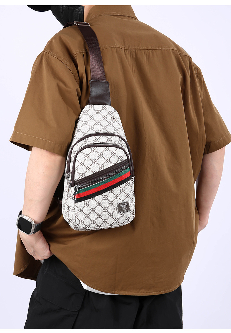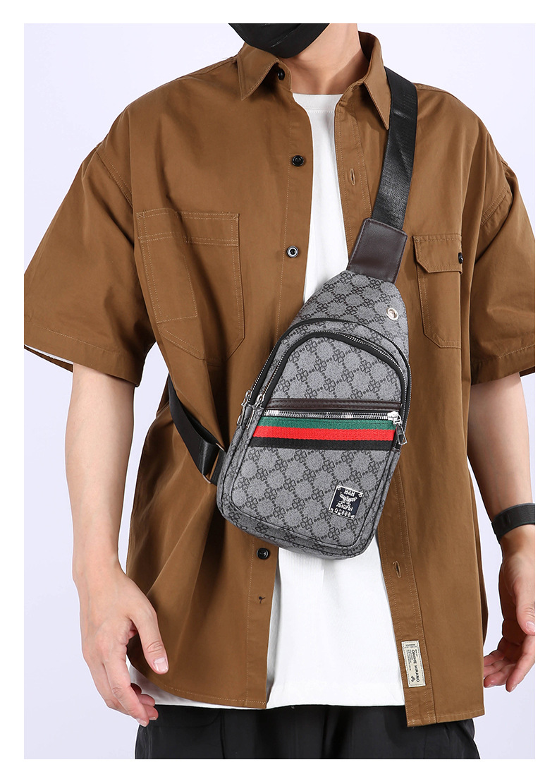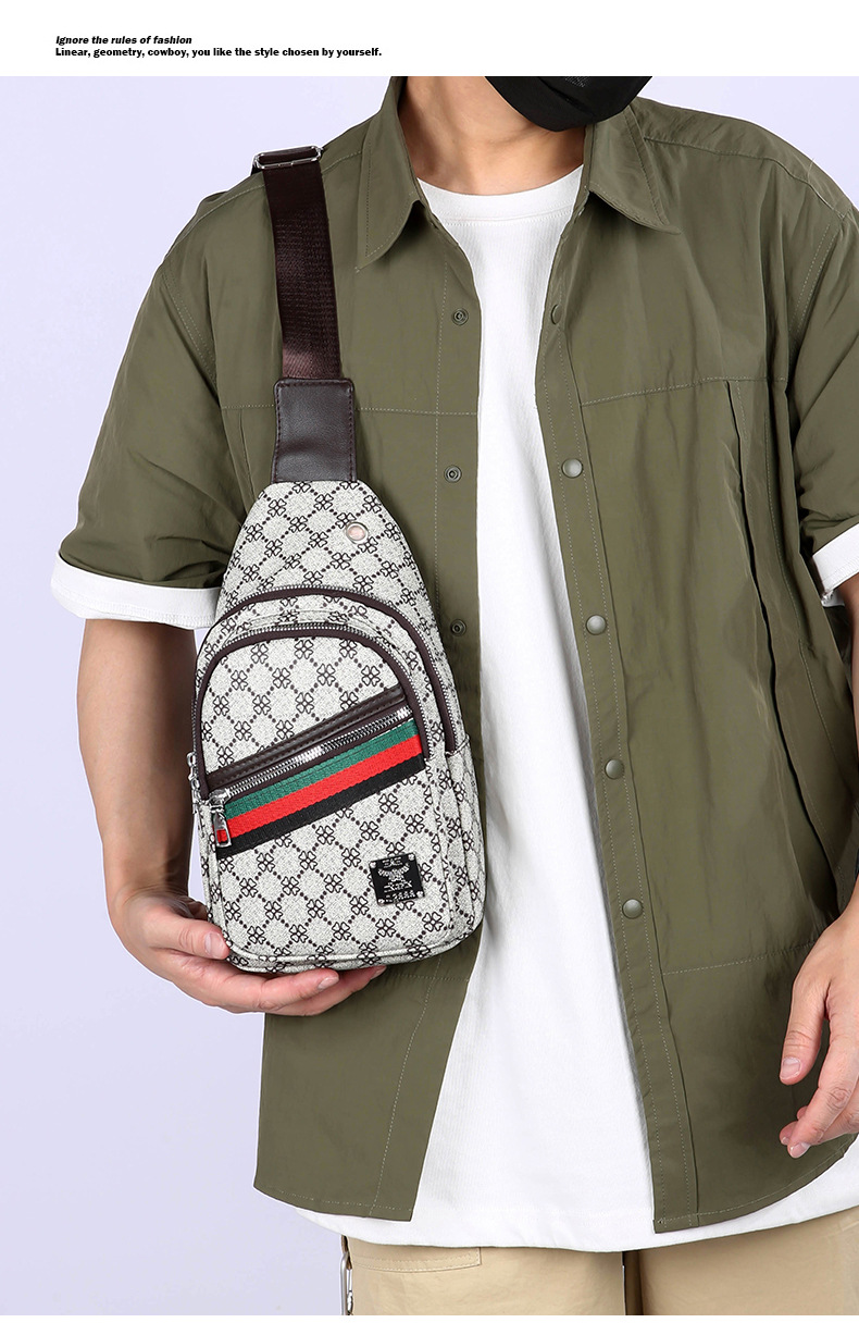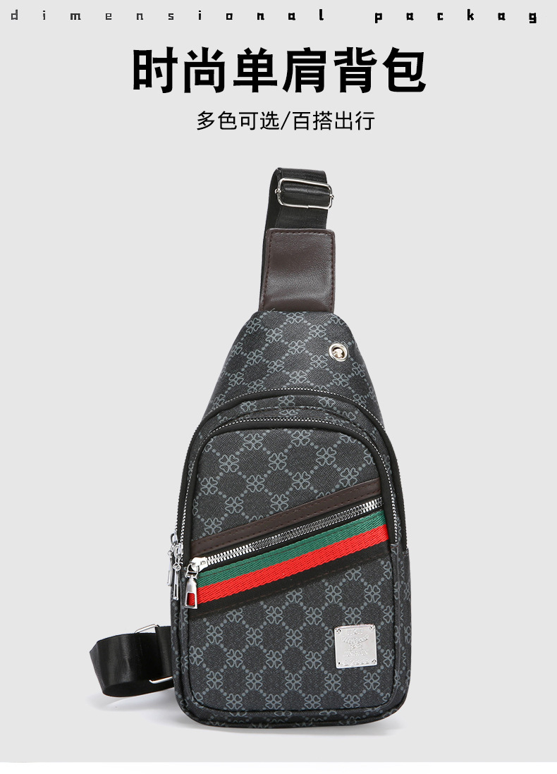 Nuevo bolso de pecho ligero de hombre estriado impreso de viaje de negocios bolso de hombro a prueba de agua tendencia PU simple mochila
