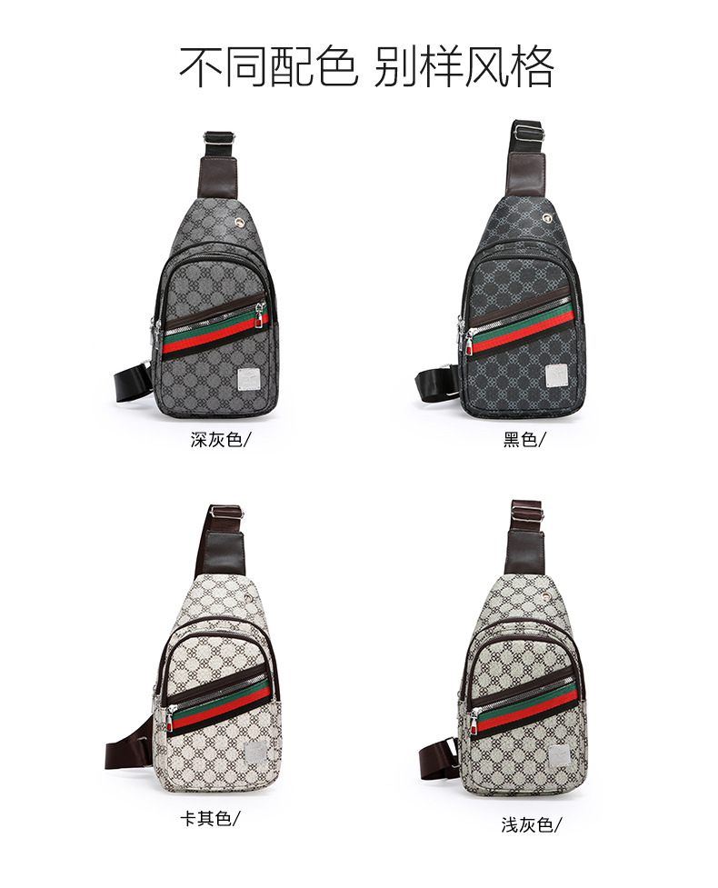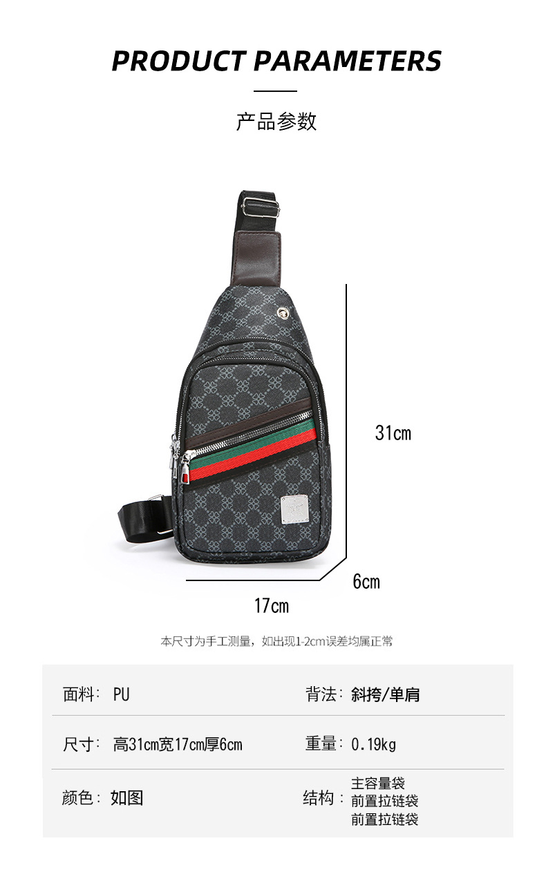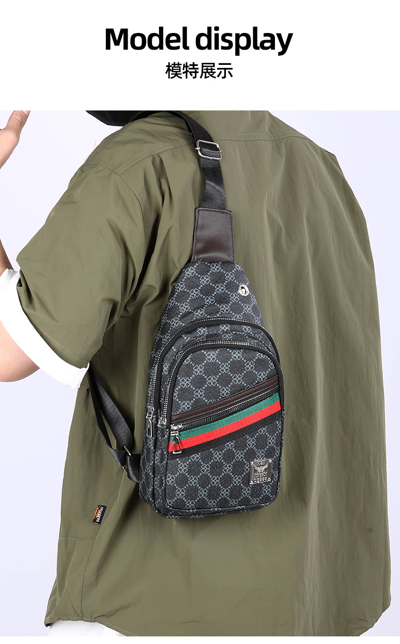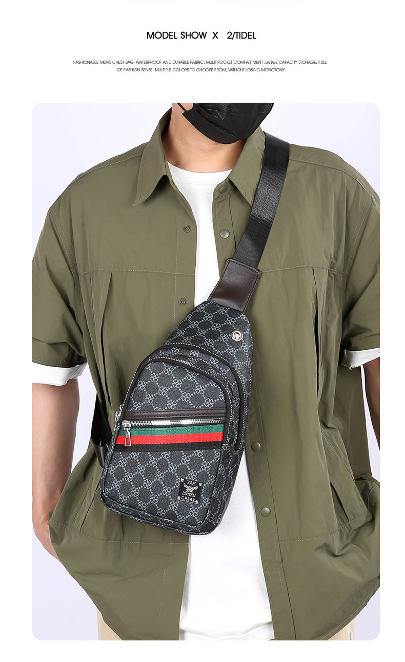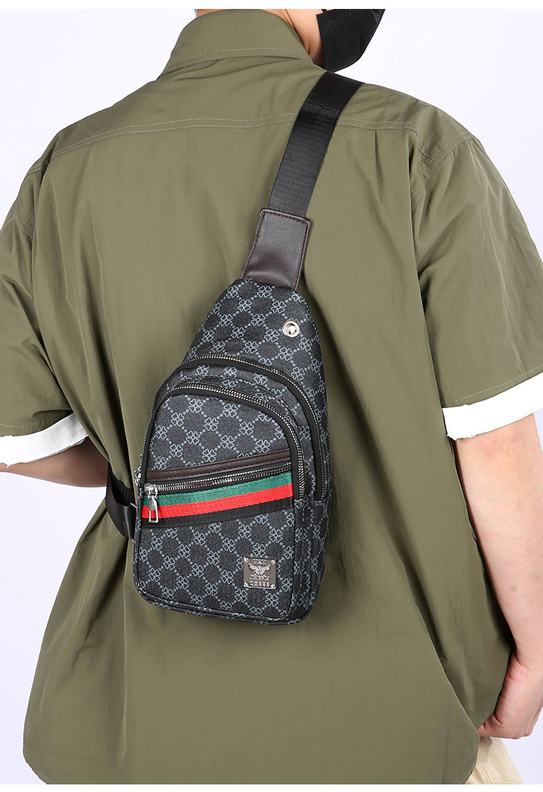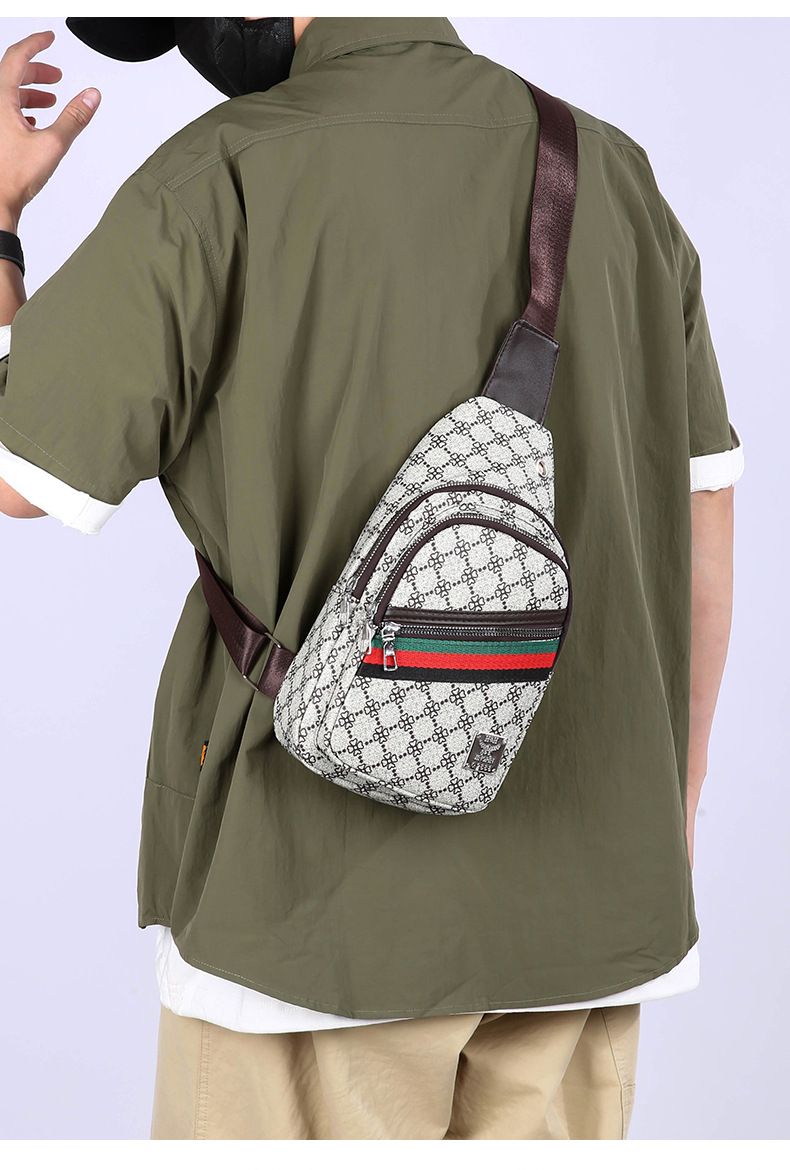 Nuevo bolso de pecho ligero de hombre estriado impreso de viaje de negocios bolso de hombro a prueba de agua tendencia PU simple mochila