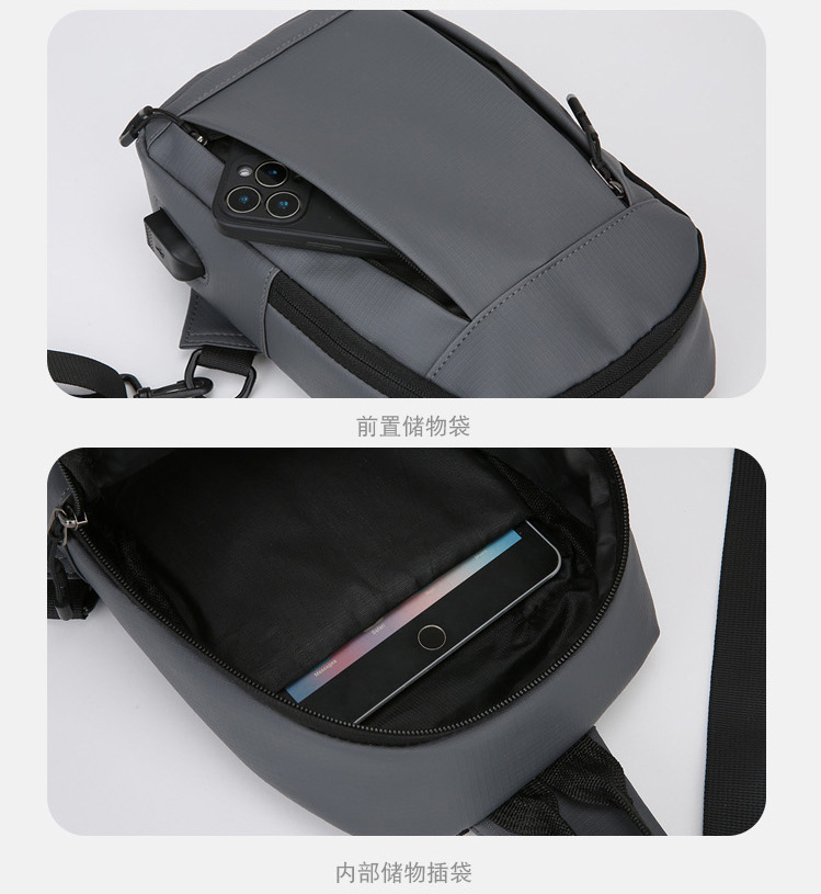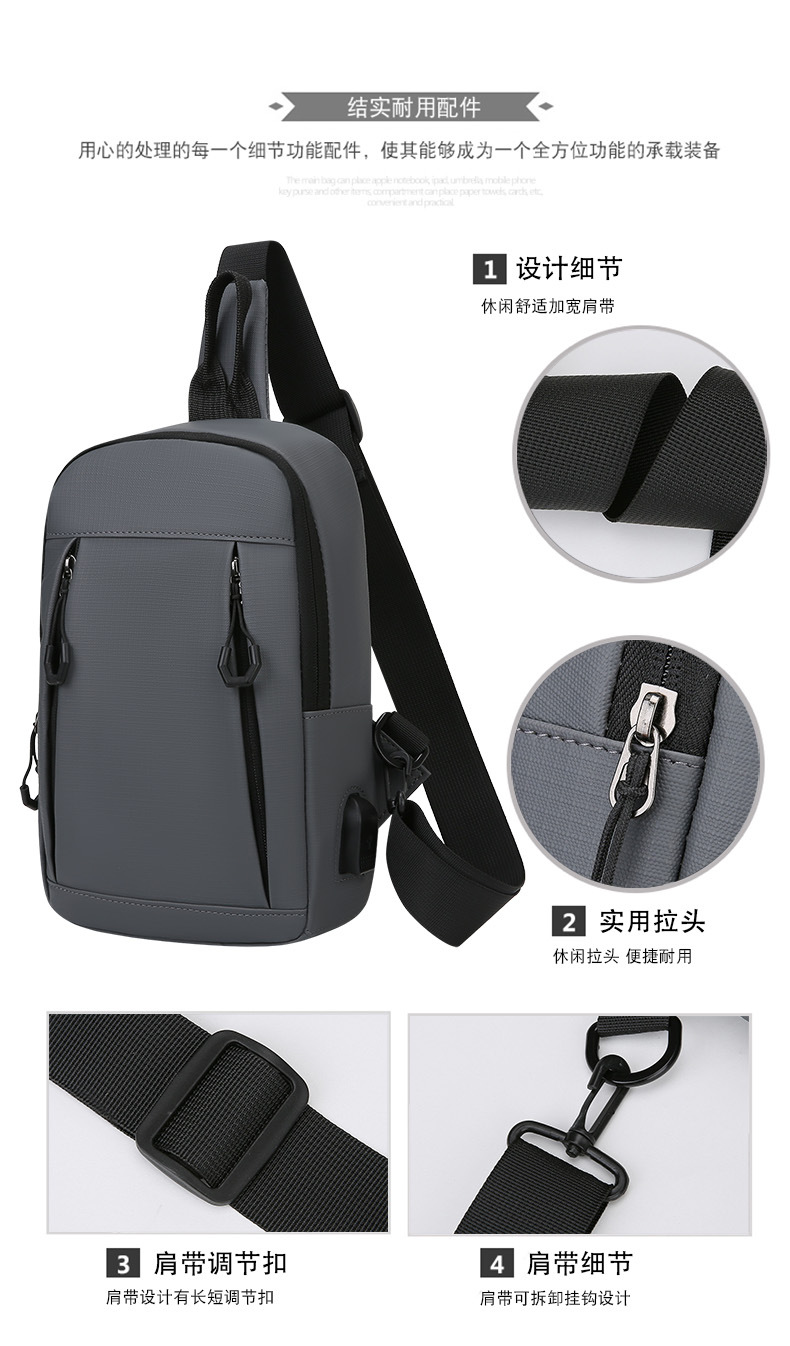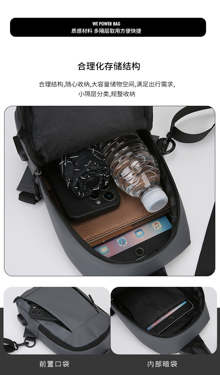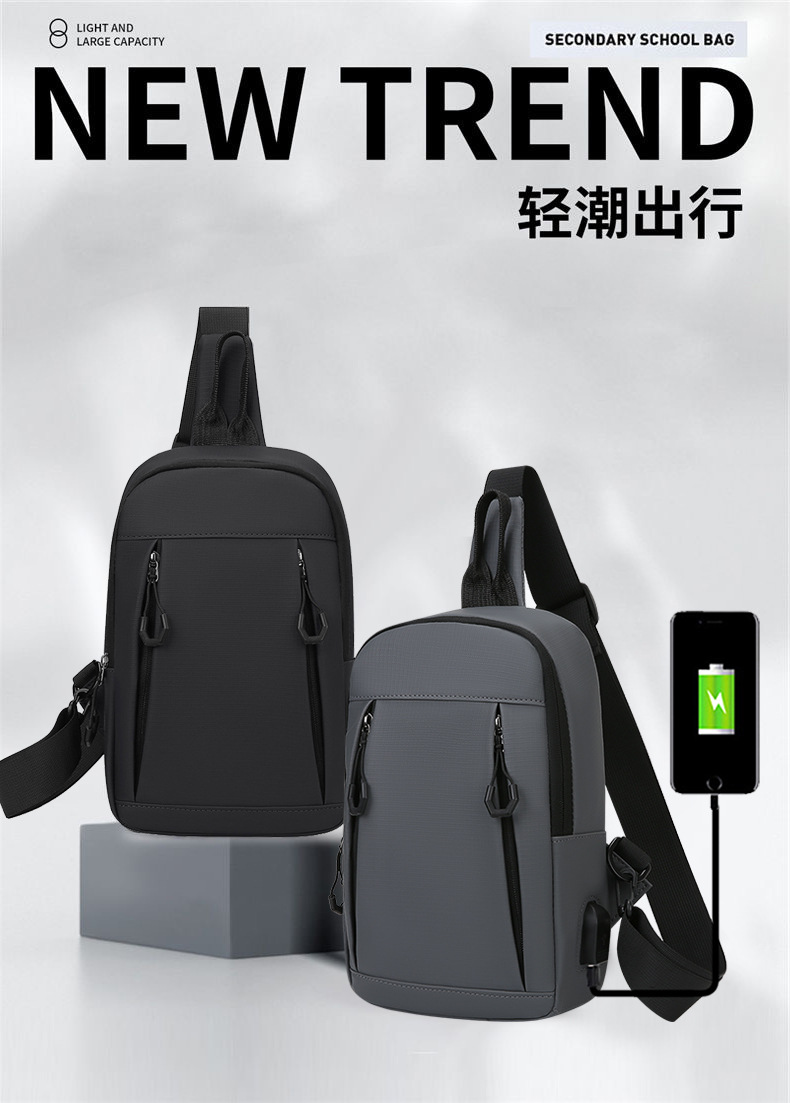 Otoño y invierno nuevo tipo de bolso de pecho de hombre multifuncional cargable USB bolso portátil de hombro para viajar bolso de mano versátil