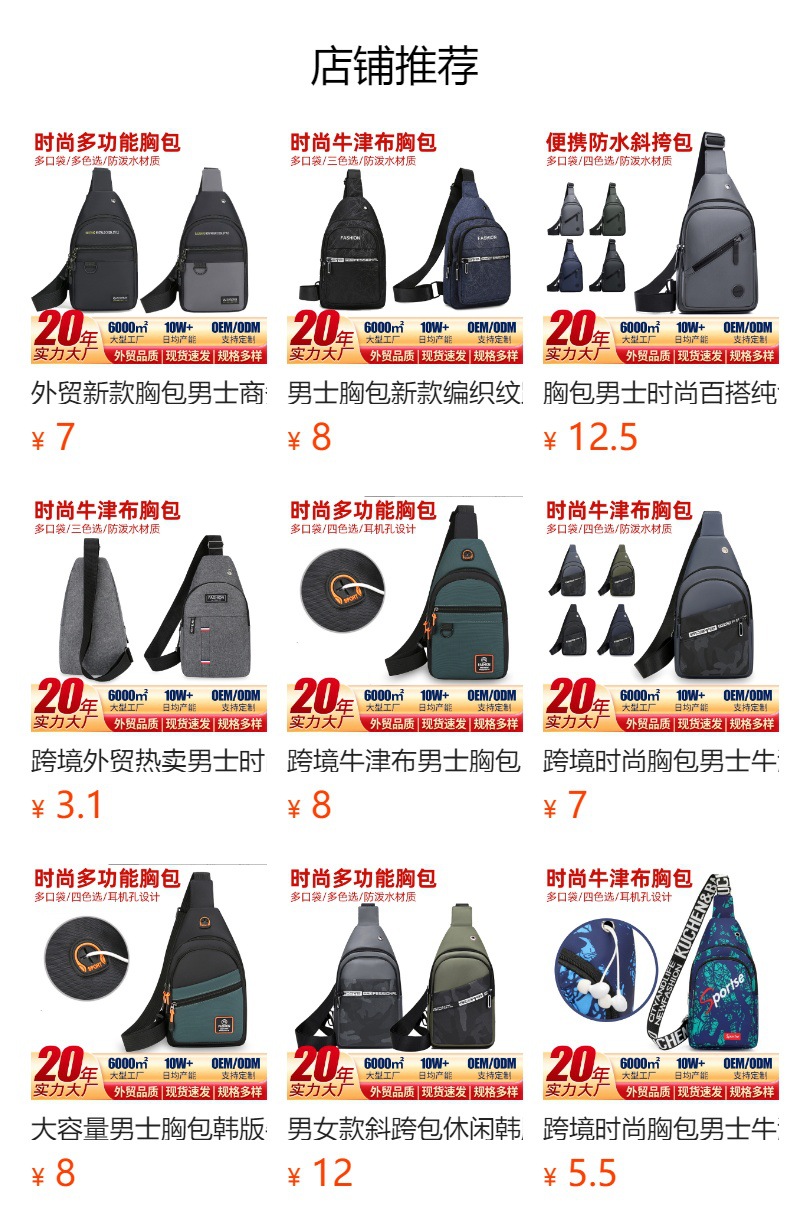 Venta al por mayor de fábrica 2023 nuevo bolso de pecho de tela Oxford para hombre simple y versátil mochila diagonal de un solo hombro para viajes al aire libre