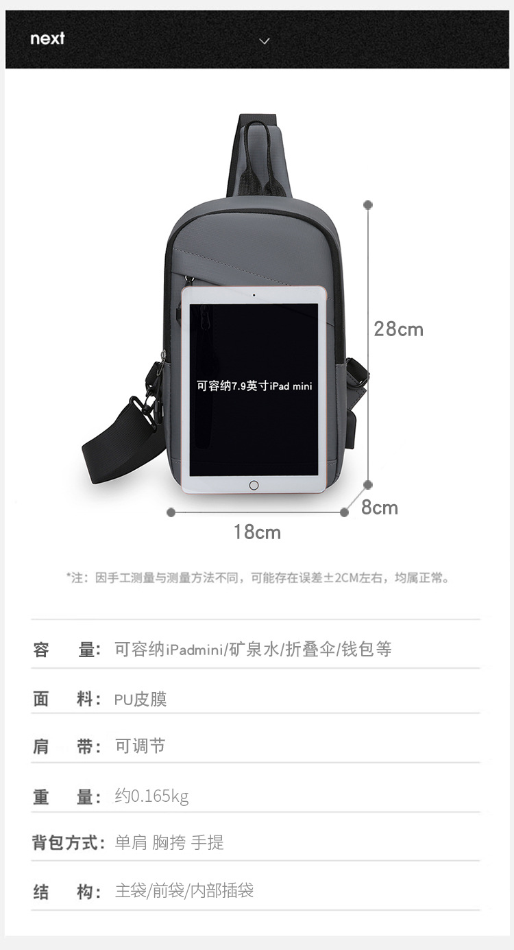 Bolso de pecho mayorista de hombre nuevo estilo de moda, bolso de hombro de viaje ligero multifuncional, bolso de mochila casual simple