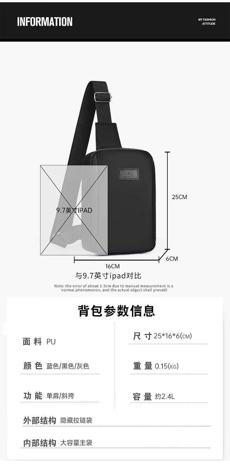 Nuevo bolso de mensajero para teléfono móvil multicapa de gran capacidad de color sólido, bolso de hombro de textura simple, bolso de pecho para hombre de moda