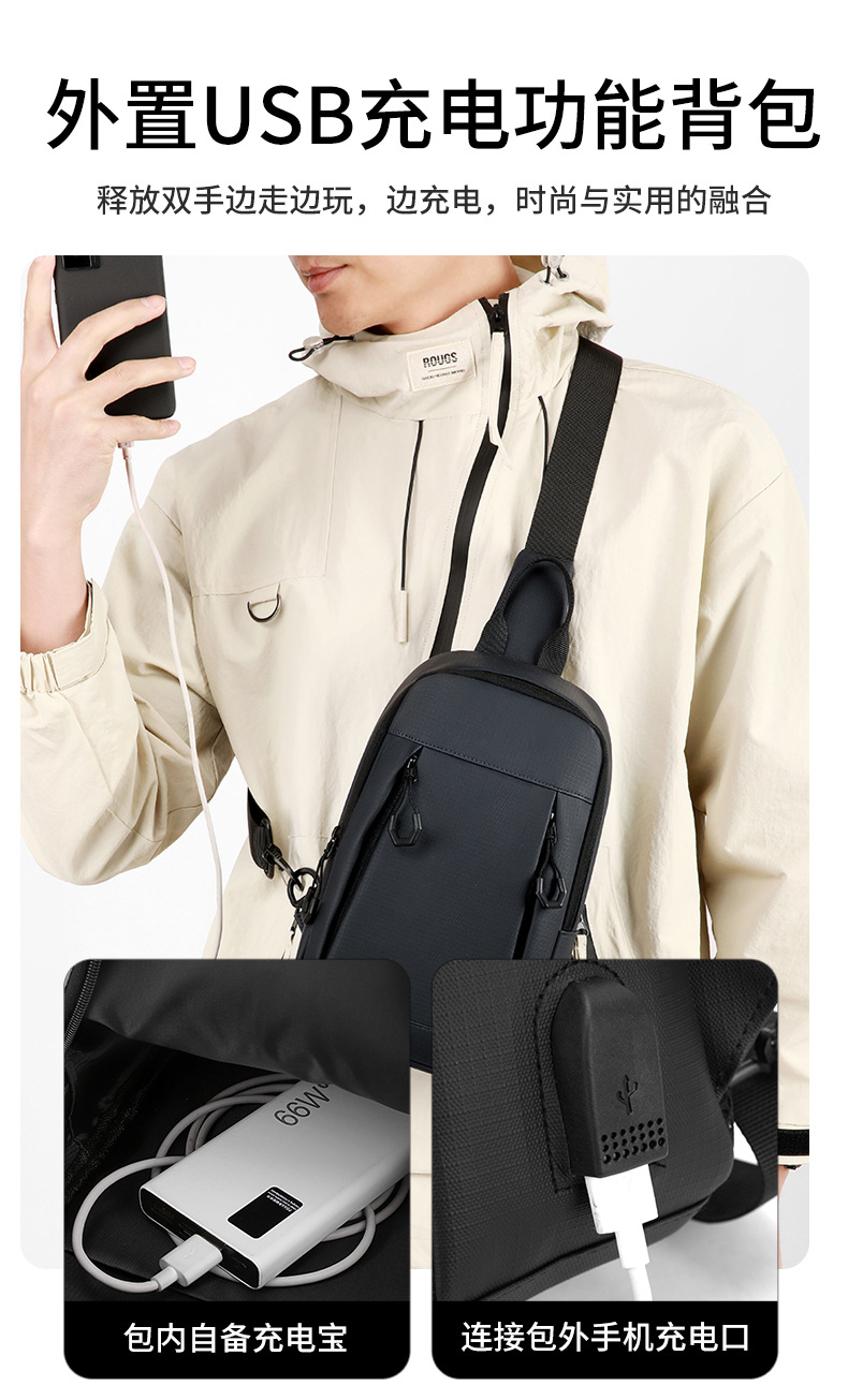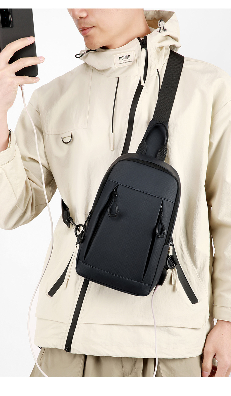 Bolso de pecho para hombre de moda coreana, bolso de mensajero de cercanías con carga USB multifuncional, bolso de hombro de todos los partidos fuera de moda