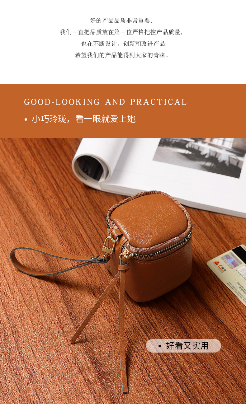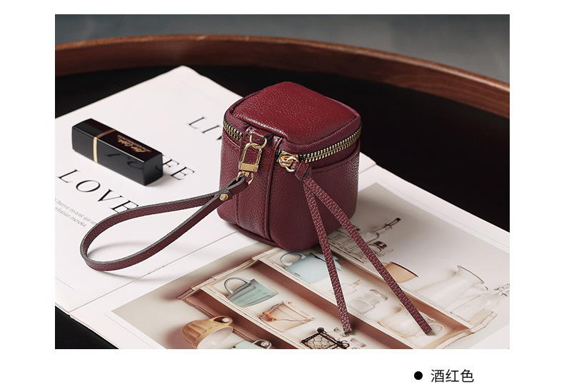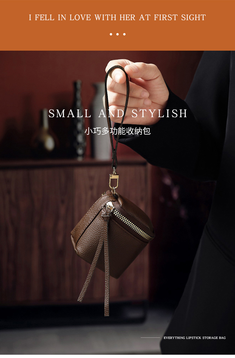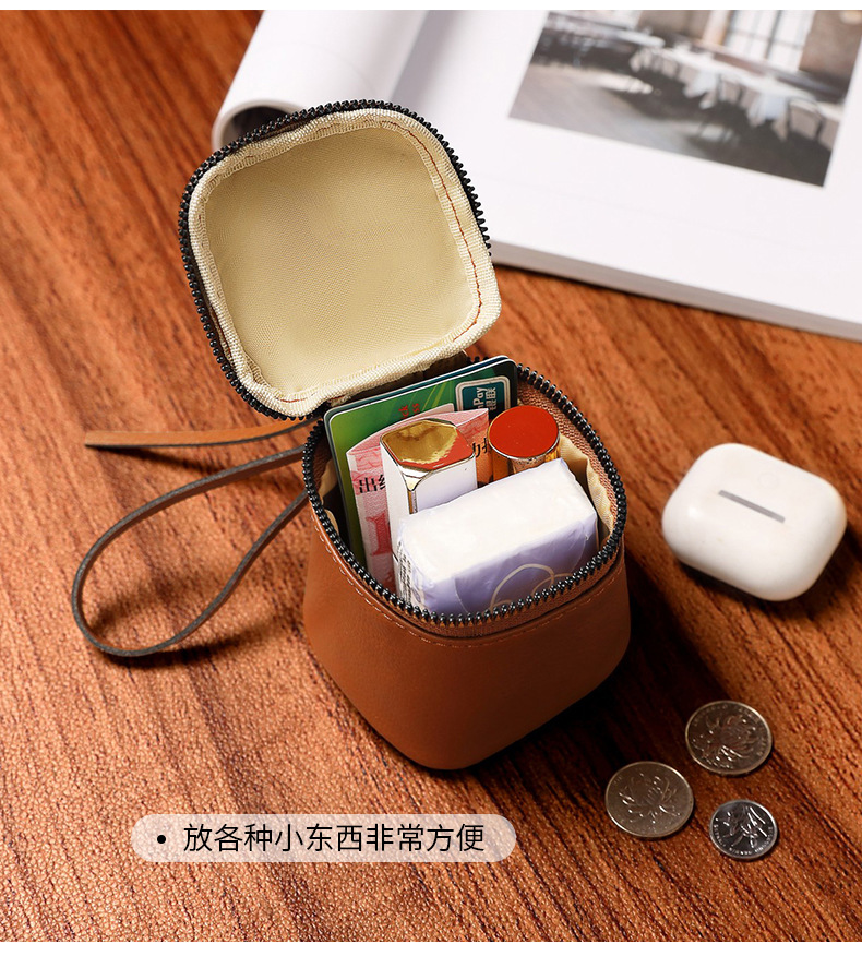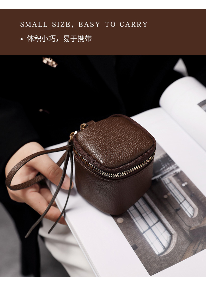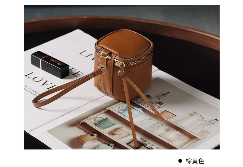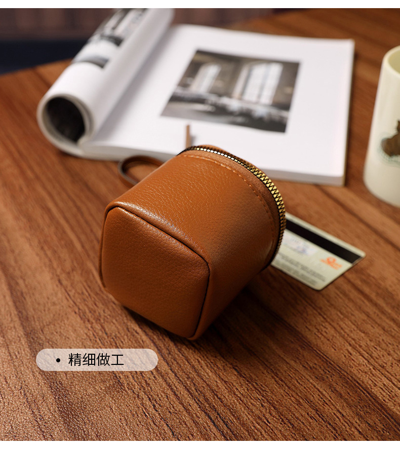 Bolsa de maquillaje de cuero retrógrado, bolso de cambio de lápiz labial, bolso de viaje portátil, barril de almacenamiento personalizado, mini bolso de cambio redondo