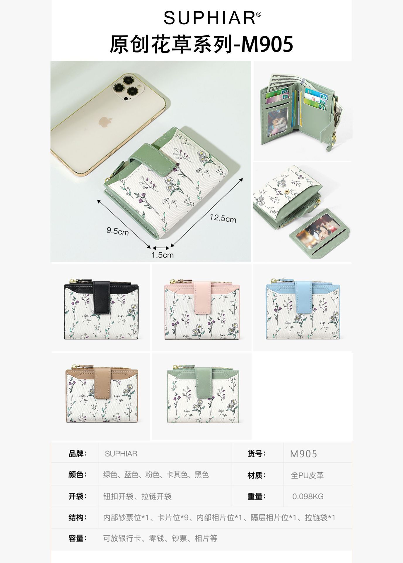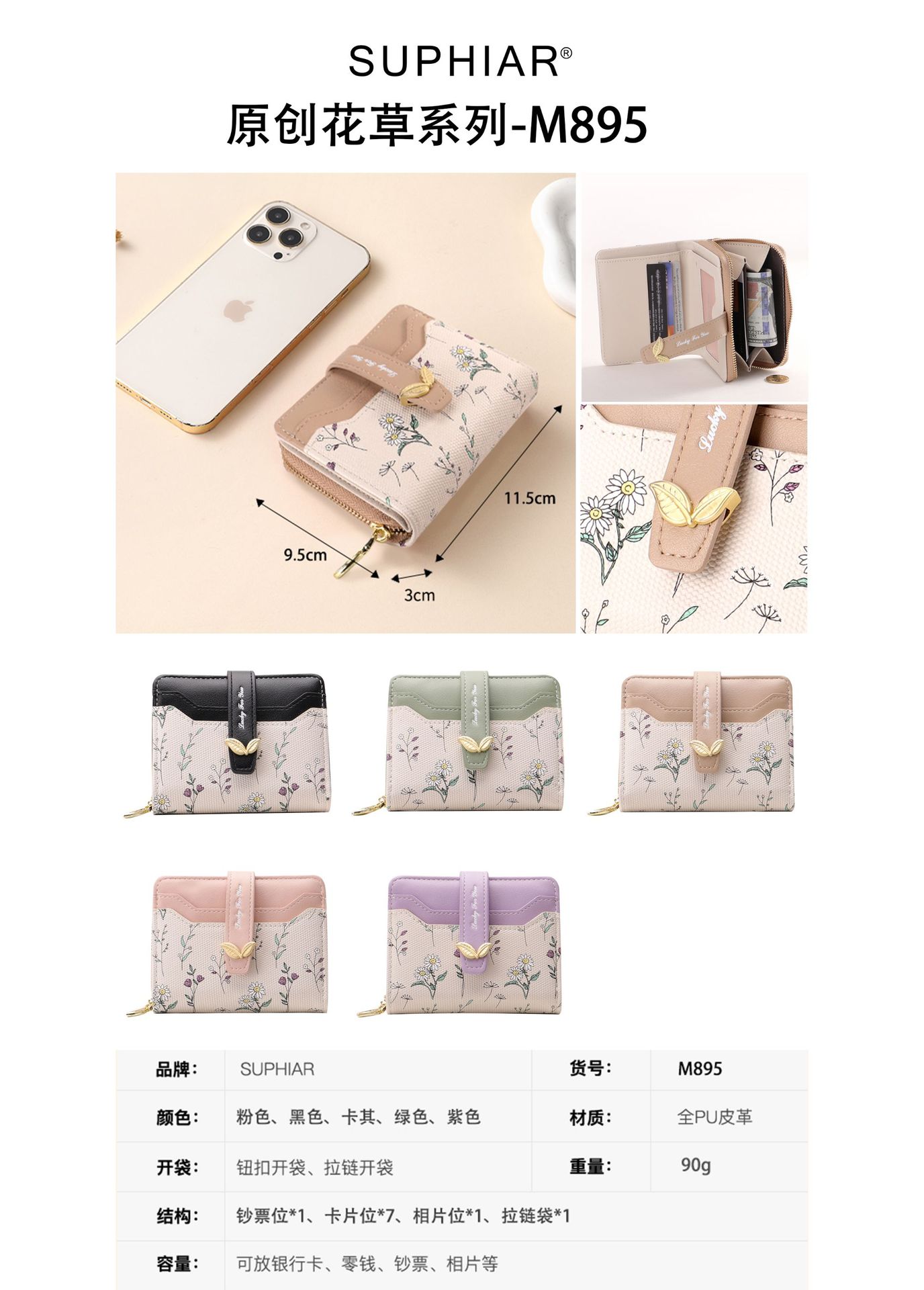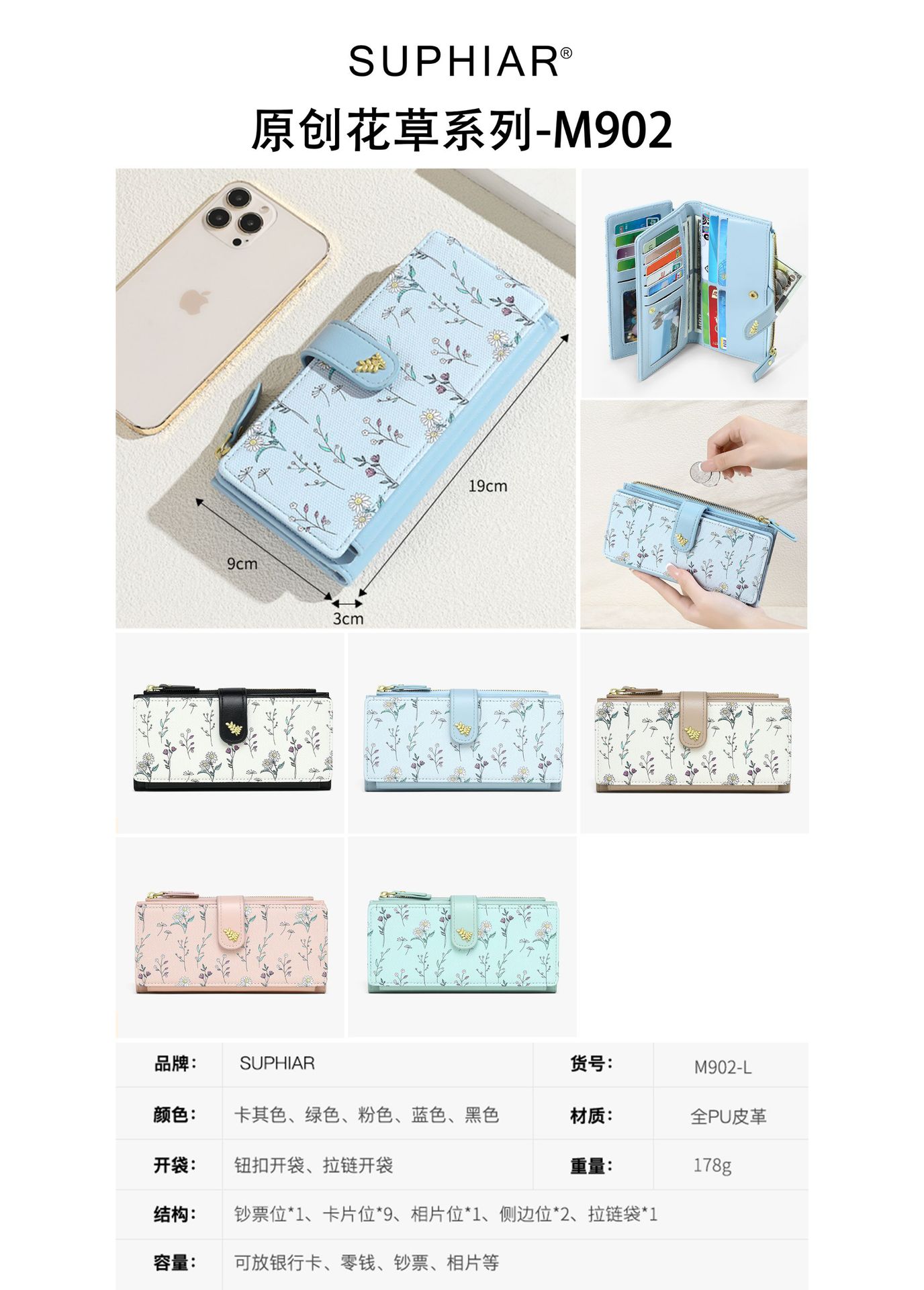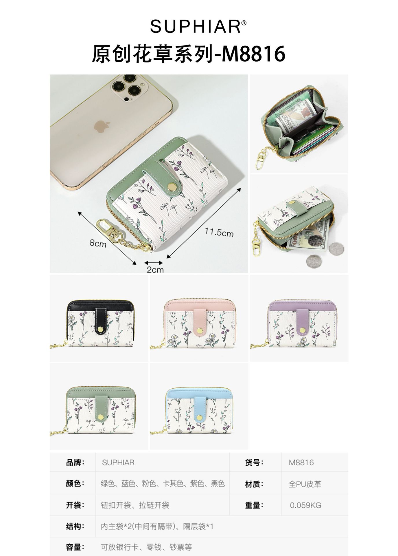 | Estructura interna del paquete | Secreta,Carpeta de billetes,Foto,Monedero,Cierre de cremallera,Identificación,La posición de la tarjeta |