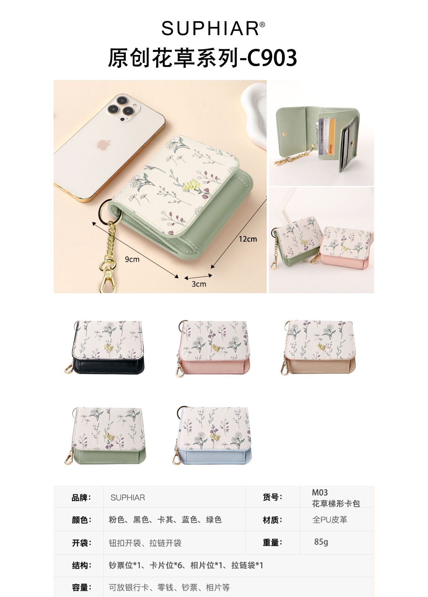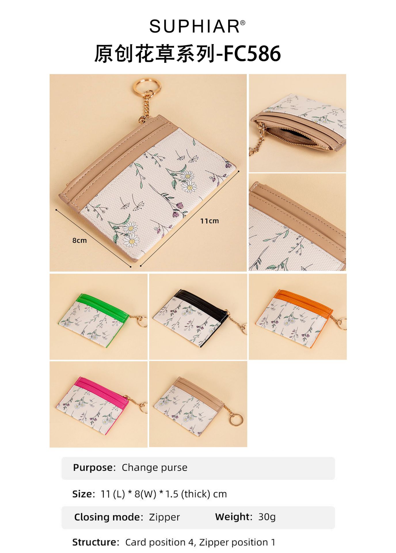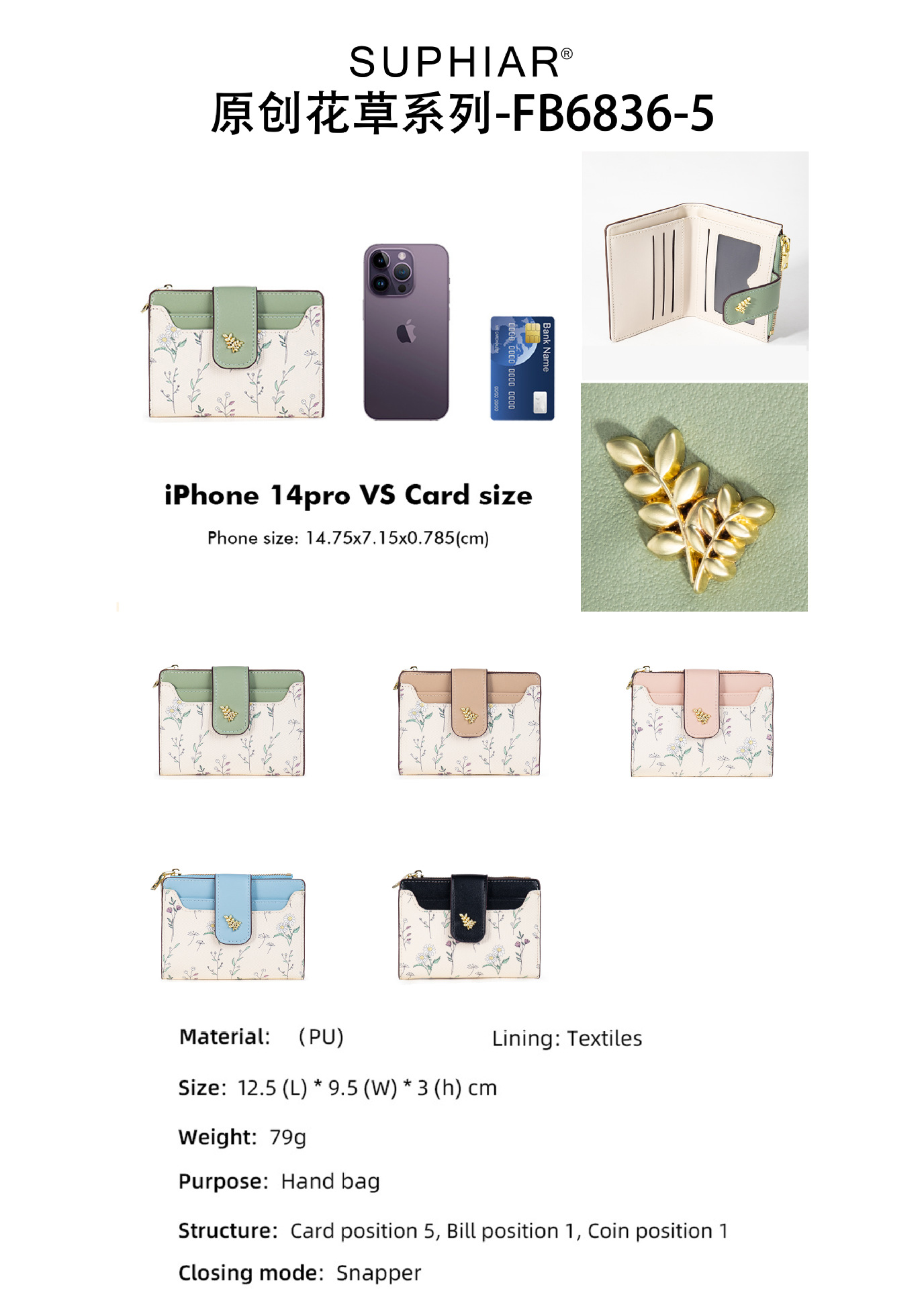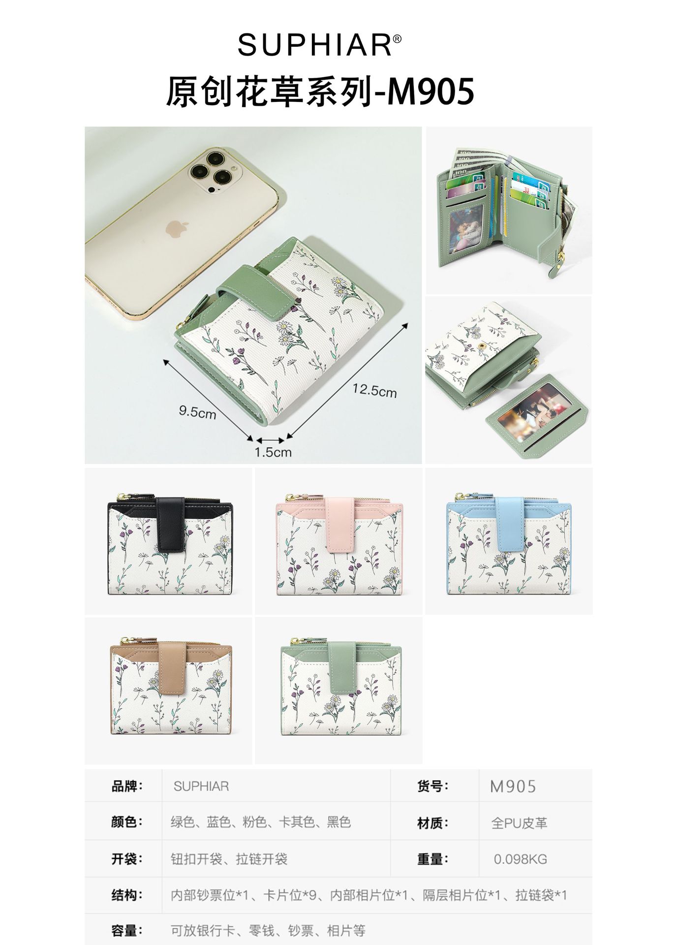 | Estructura interna del paquete | Secreta,Carpeta de billetes,Foto,Monedero,Cierre de cremallera,Identificación,La posición de la tarjeta |