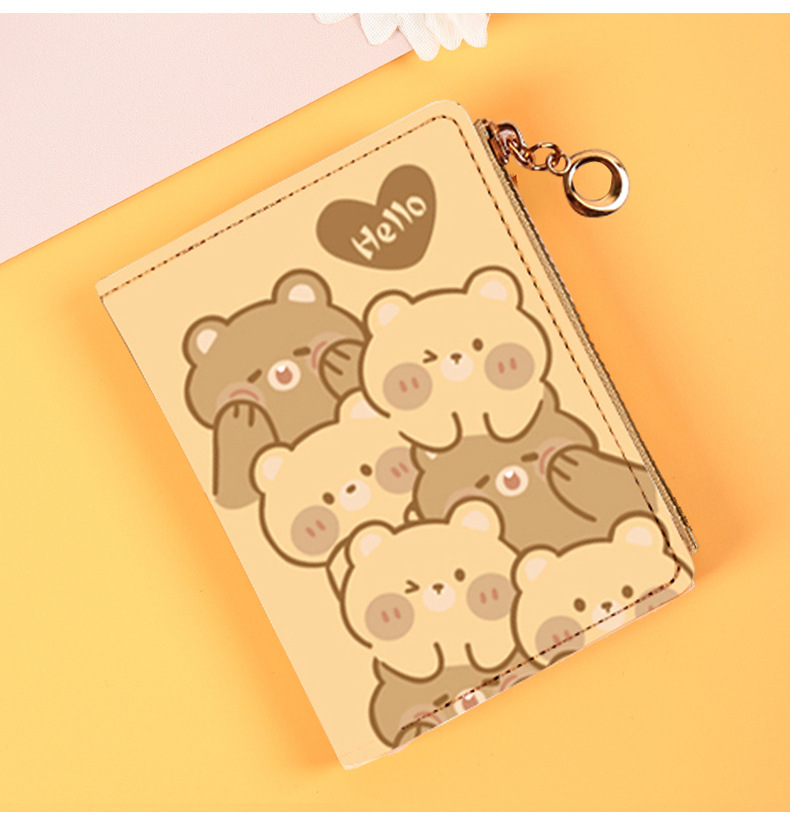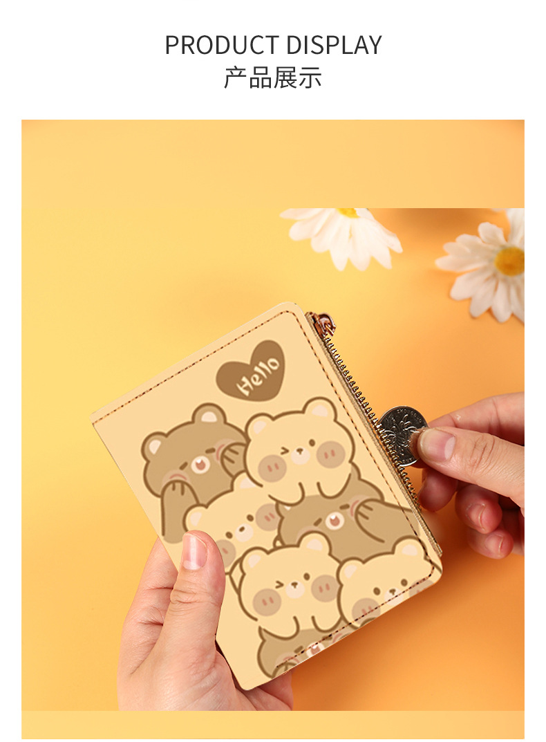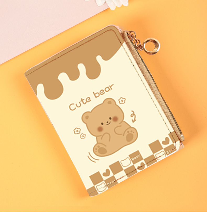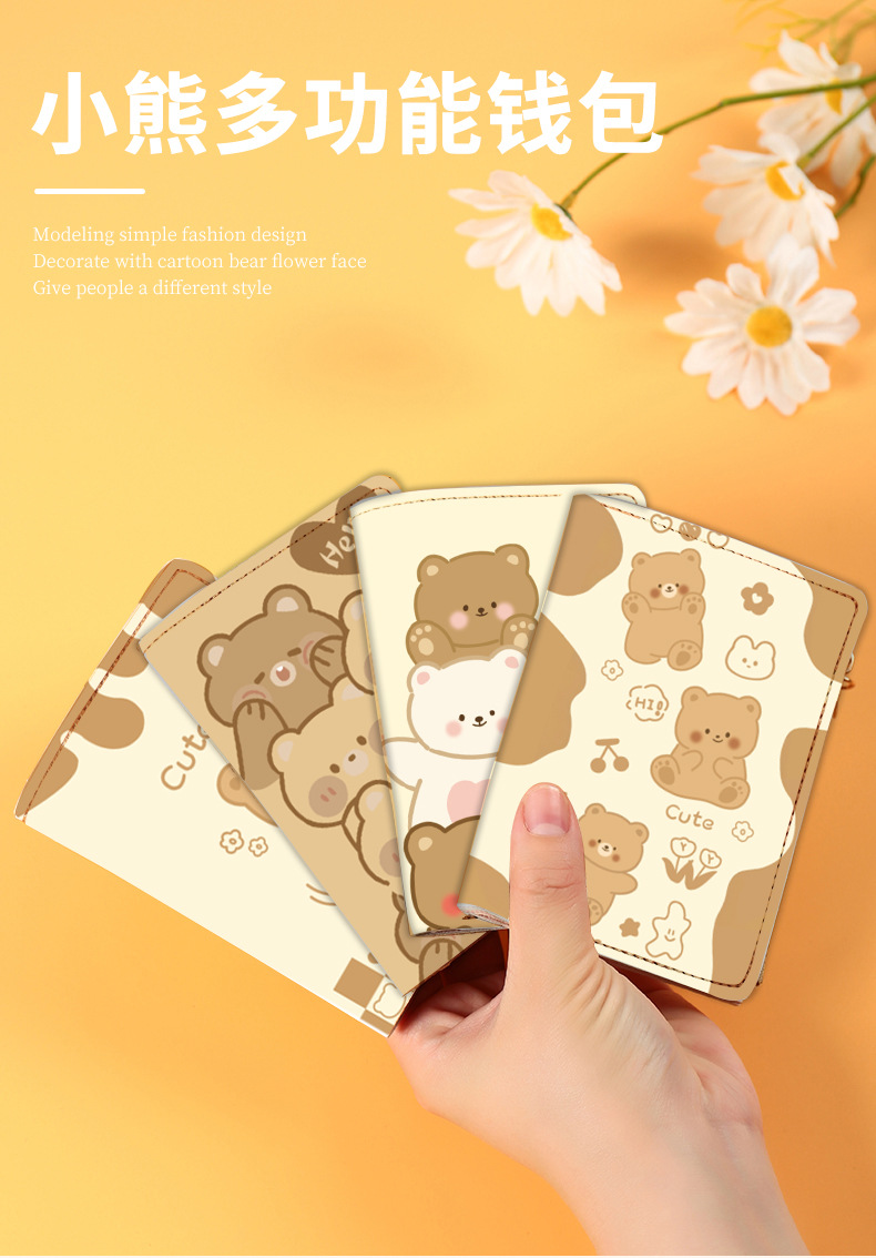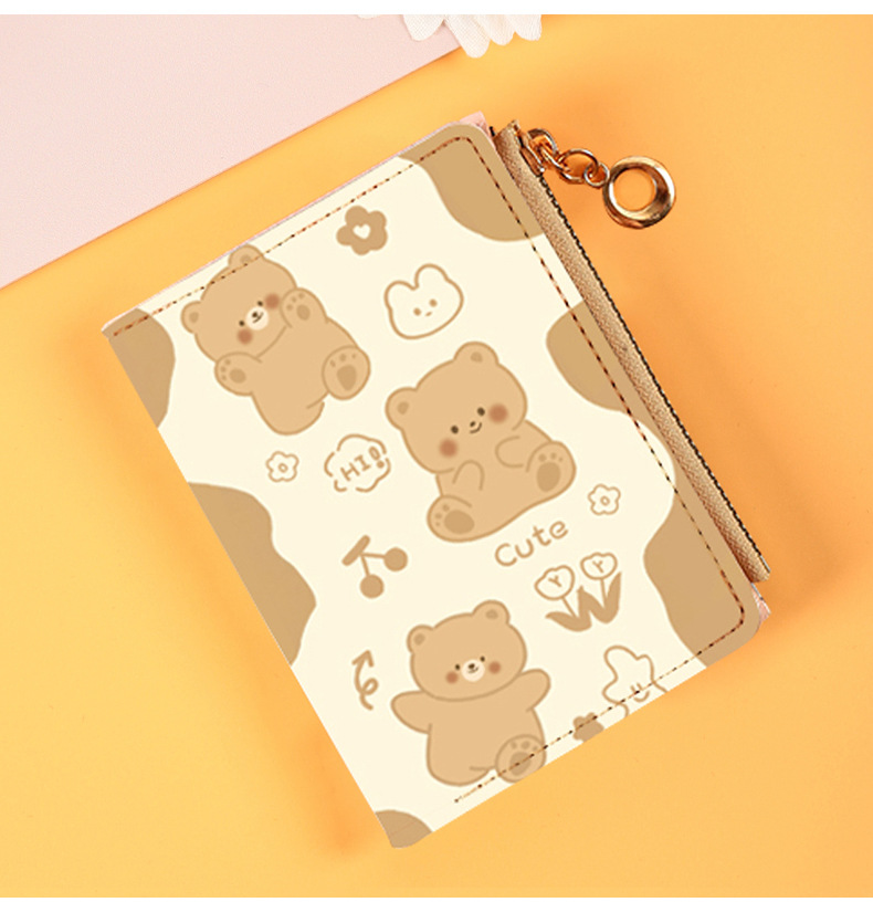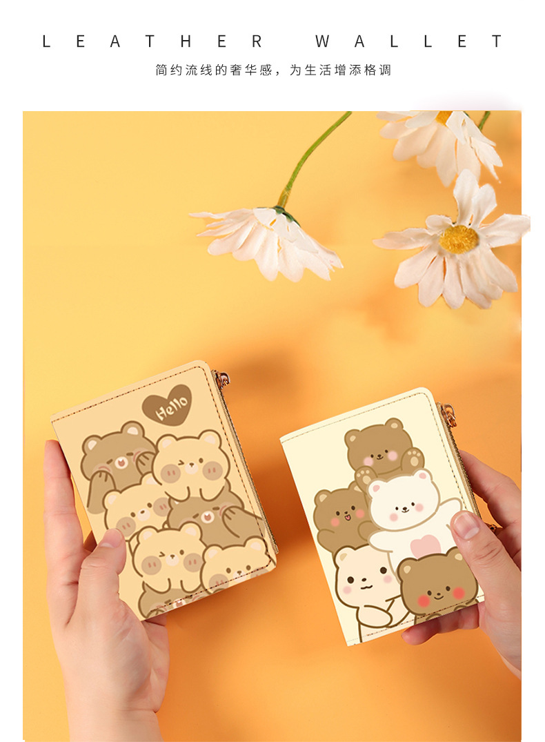 Nuevas chicas de dibujos animados osos animados lindos corto billetera cremallera cartera cartera tarjetas pequeñas bolsas de cambio frescas