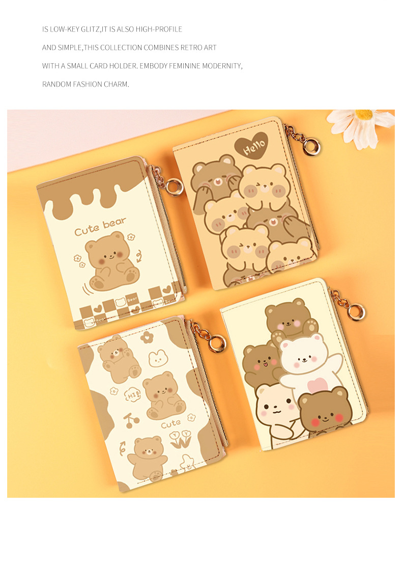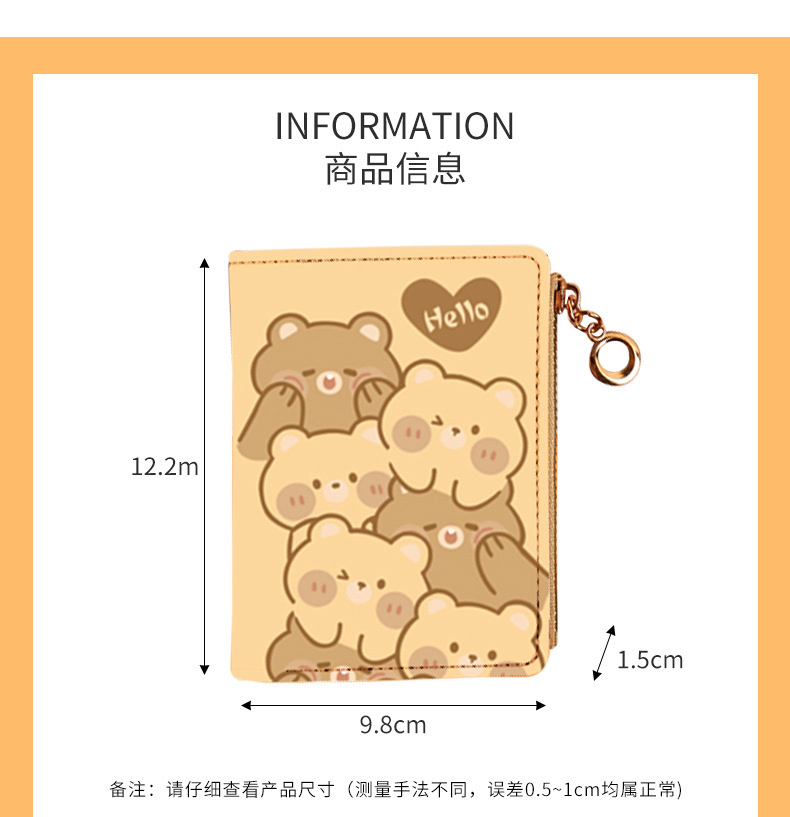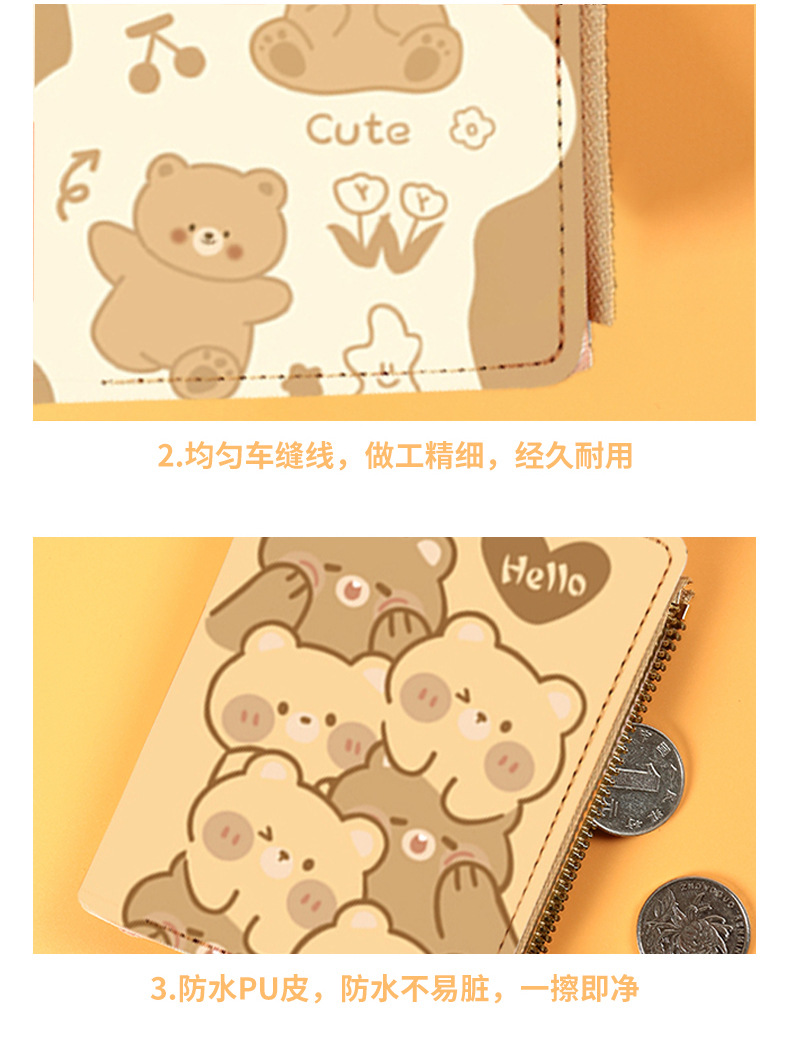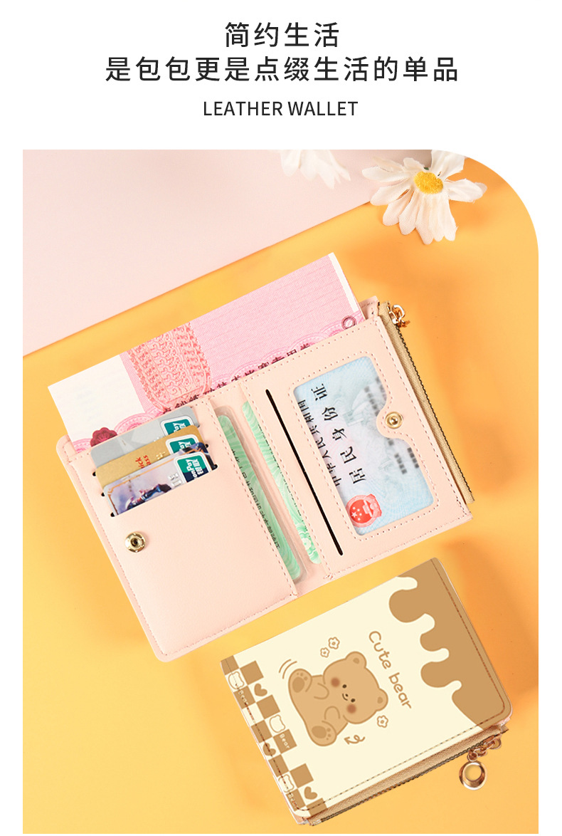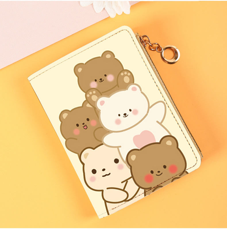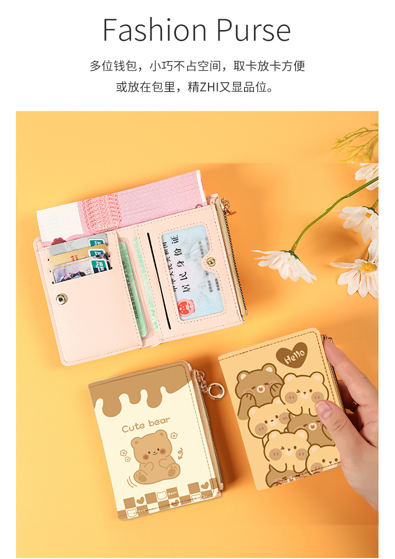 Nuevas chicas de dibujos animados osos animados lindos corto billetera cremallera cartera cartera tarjetas pequeñas bolsas de cambio frescas