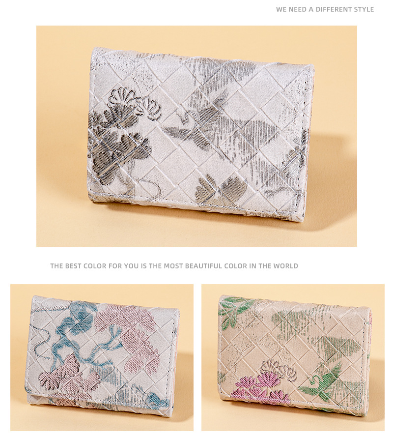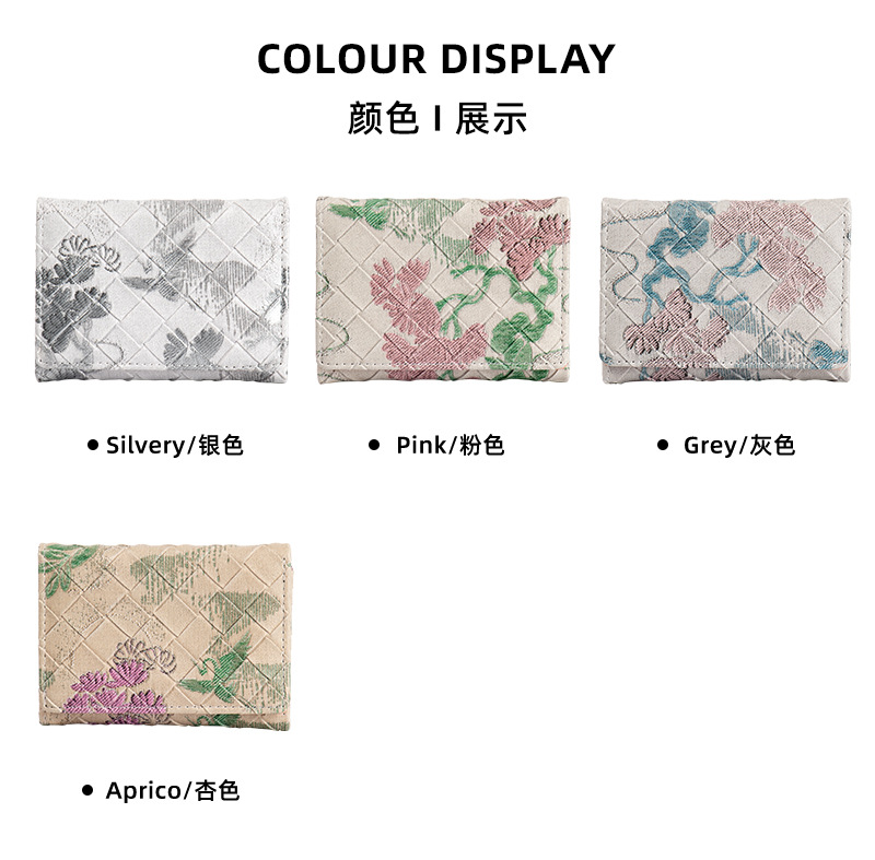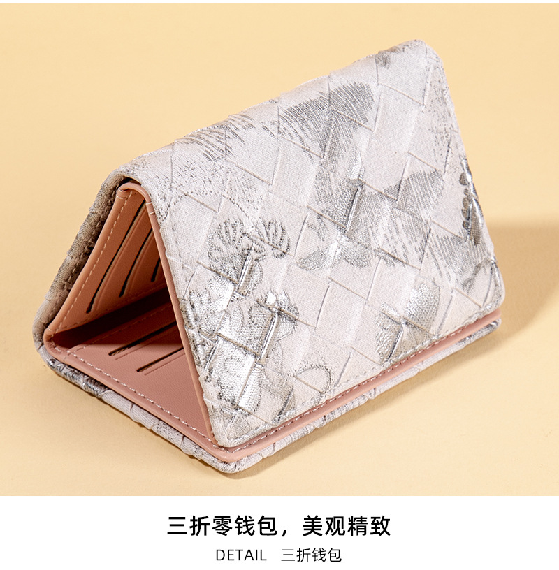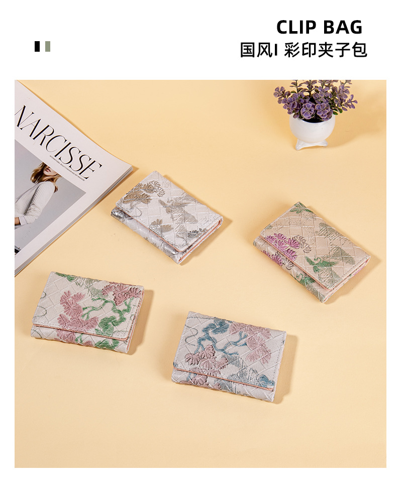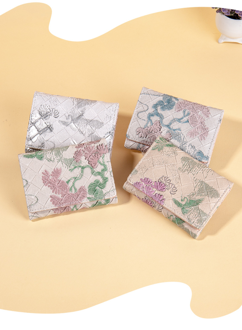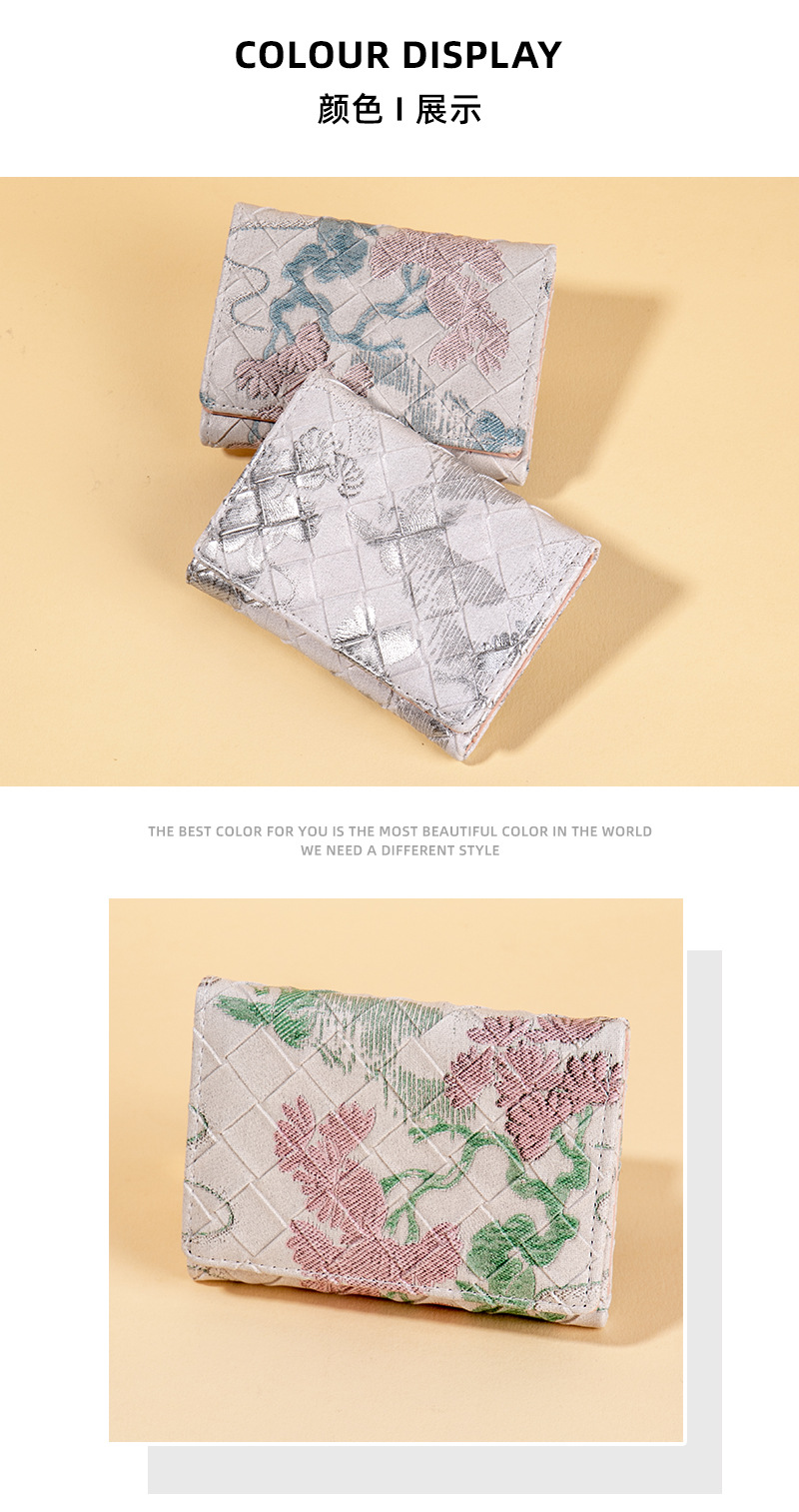 Cartera pequeña de tres pliegues de estilo nacional retro, tarjetero corto y ultrafino con impresión en color, billetera multifuncional y ligera para mujer con patrón de rombos