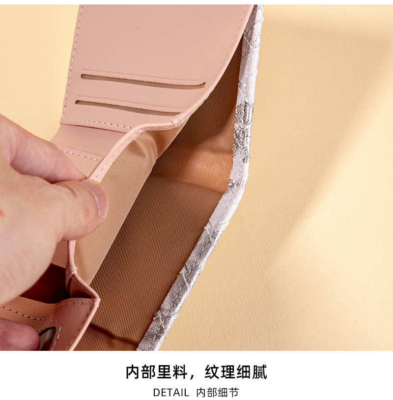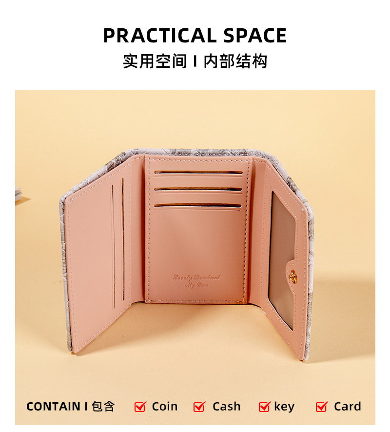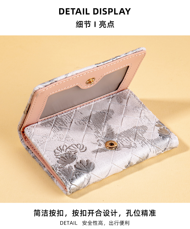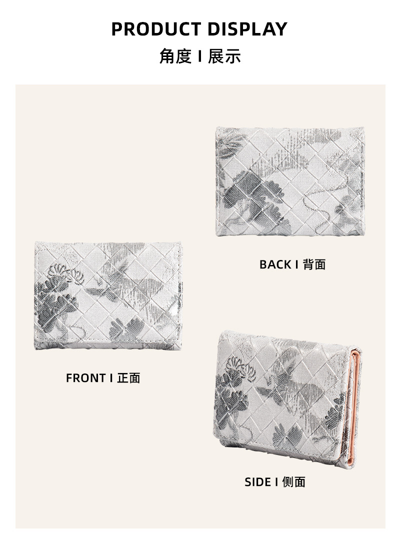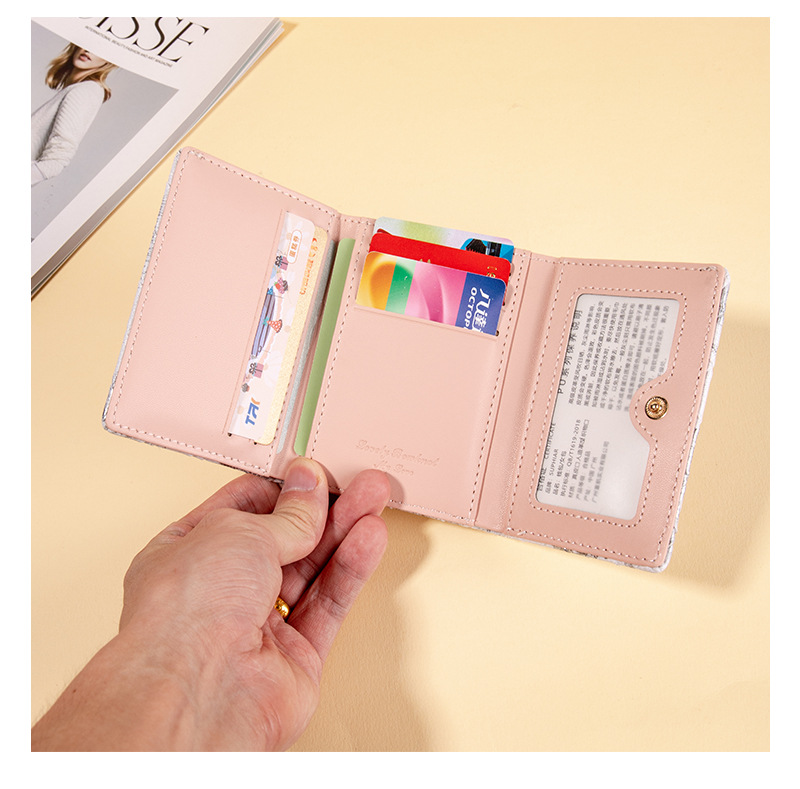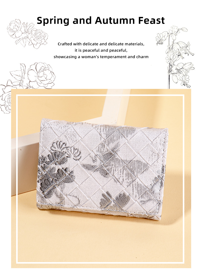 Cartera pequeña de tres pliegues de estilo nacional retro, tarjetero corto y ultrafino con impresión en color, billetera multifuncional y ligera para mujer con patrón de rombos