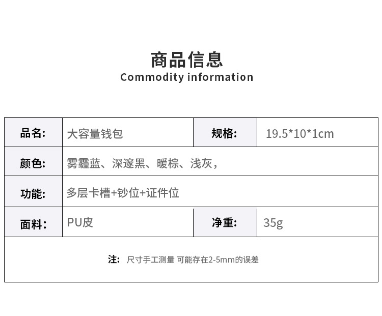 Cartera de hombre, cartera corta de hombre, bolso de tarjeta en una cartera de hombre, bolso multifuncional de gran capacidad.