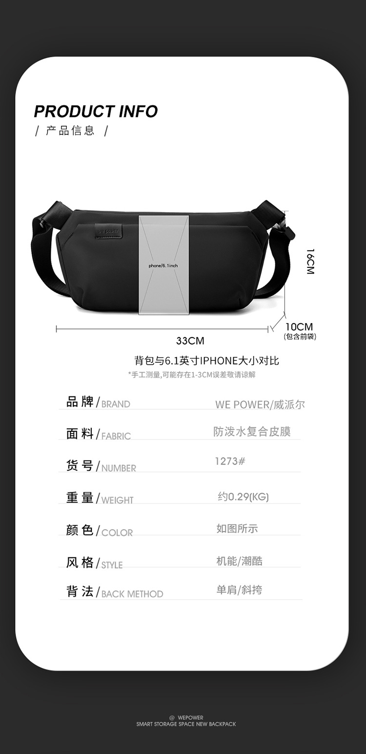 【产品货号】1273#胸包、单肩、斜挎包