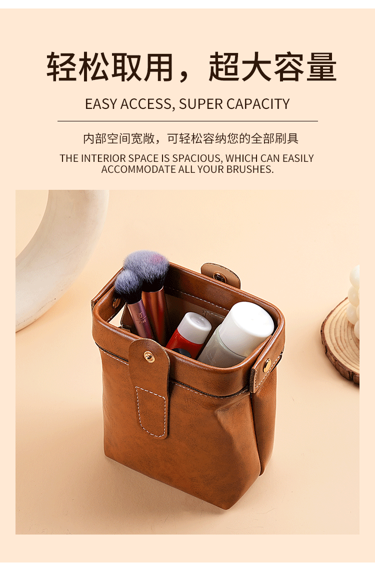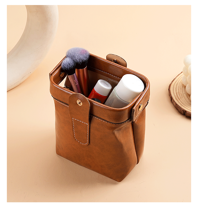 Bolsas de maquillaje hechas a mano originales de cuero suave, nicho de alto nivel, bolsas de mano para jugar bolsas de almacenamiento retro, bolsas de viaje para mujeres.