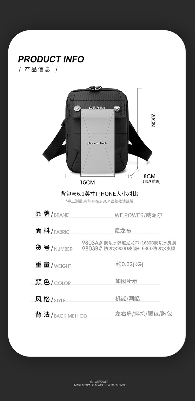 【产品货号】9803A-9803B#单肩、斜挎包、可穿戴腰包